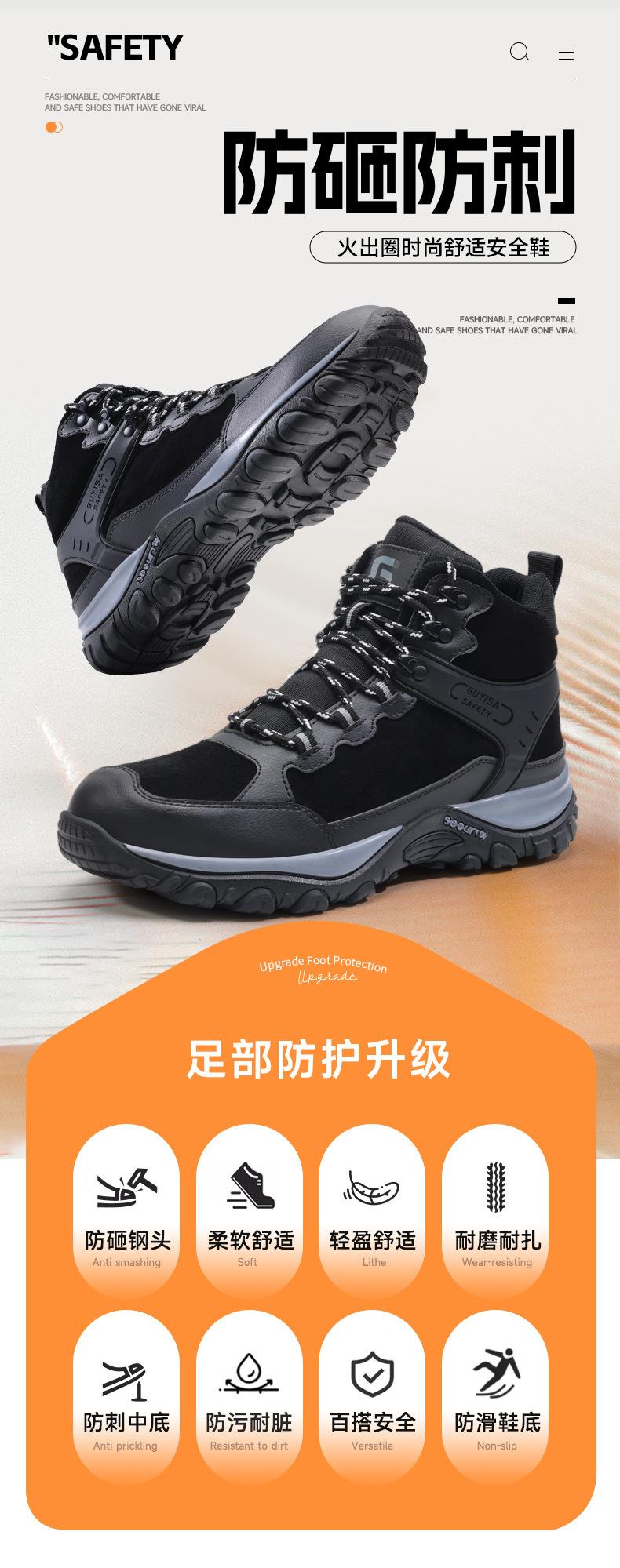Zapatos de protección laboral de otoño de caña alta ropa de trabajo transfronteriza para hombre anti-aplastamiento anti-perforación zapatos de seguridad suela blanda puntera de acero zapatos de trabajo resistentes al desgaste