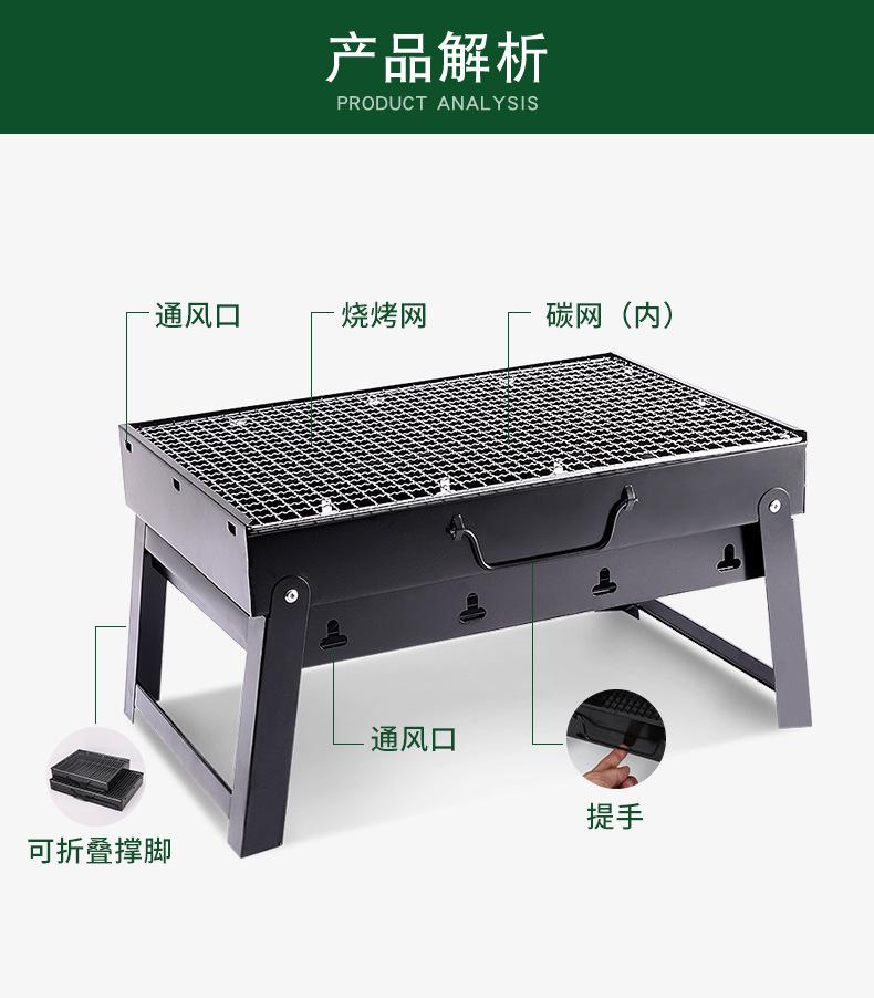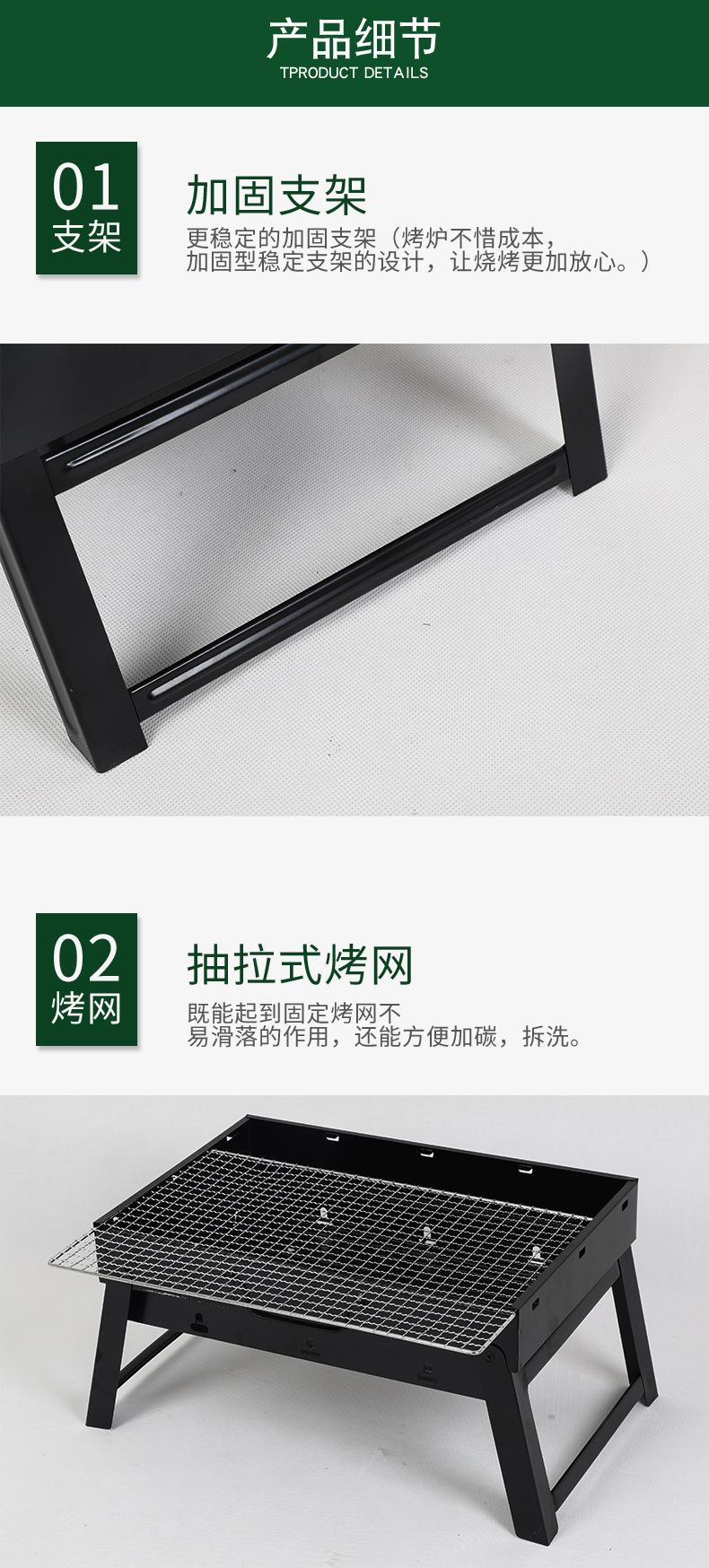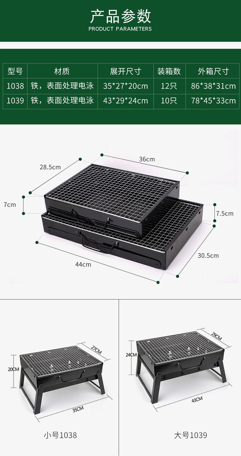 Parrilla de Barbacoa Portátil Plegable para Exteriores Transfronteriza Parrilla de Barbacoa de Carbón para el Hogar Estufa de Barbacoa de Acero Negro