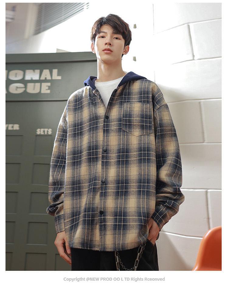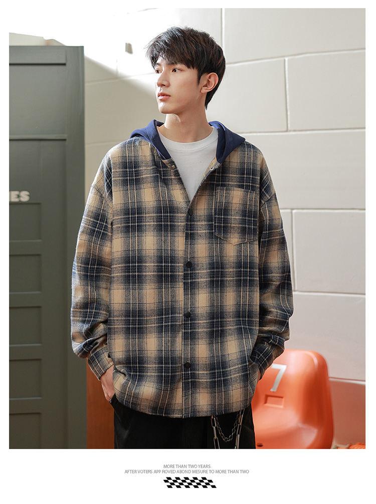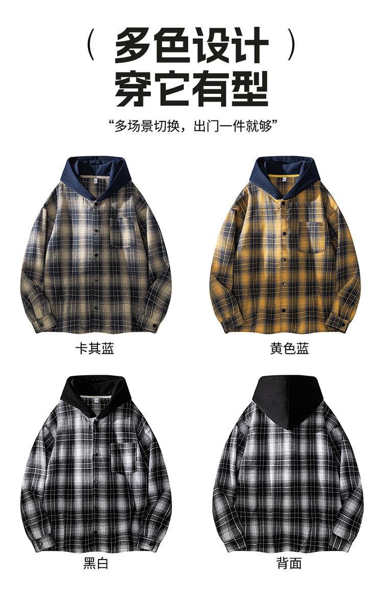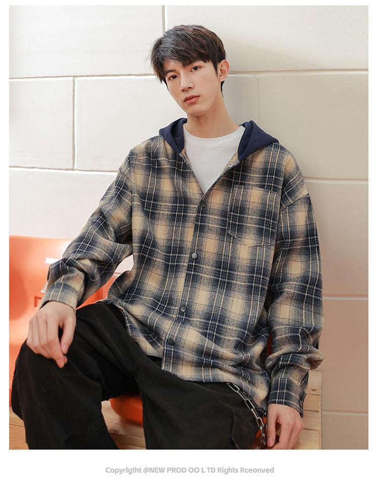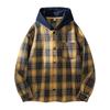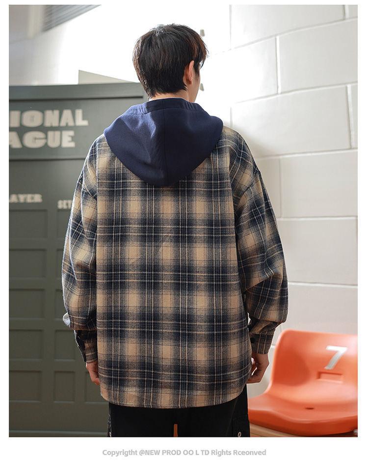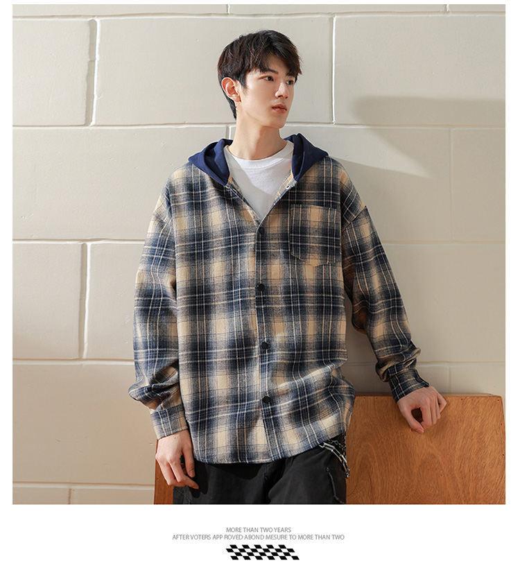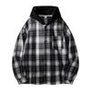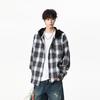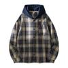 Camisa de Algodón a Cuadros Retro para Hombre Otoño 2025 Transfronteriza con Capucha Suelta Chaqueta de Camisa de Manga Larga para Hombre
