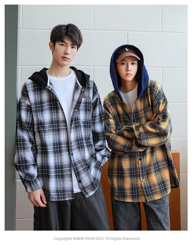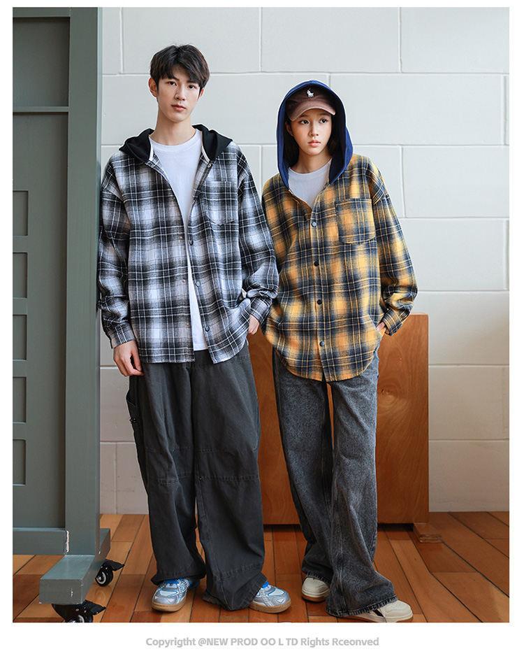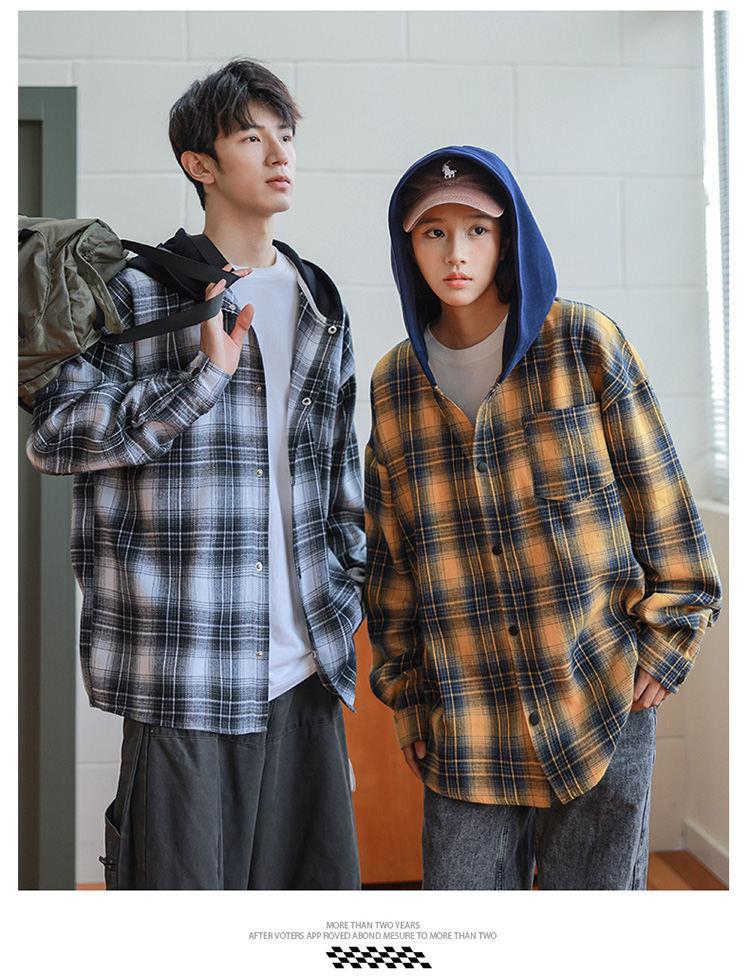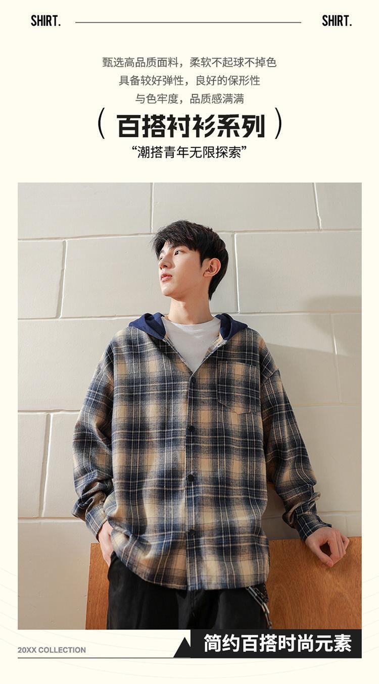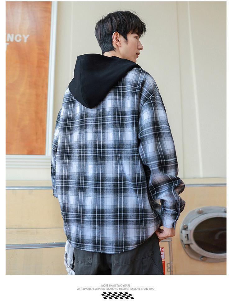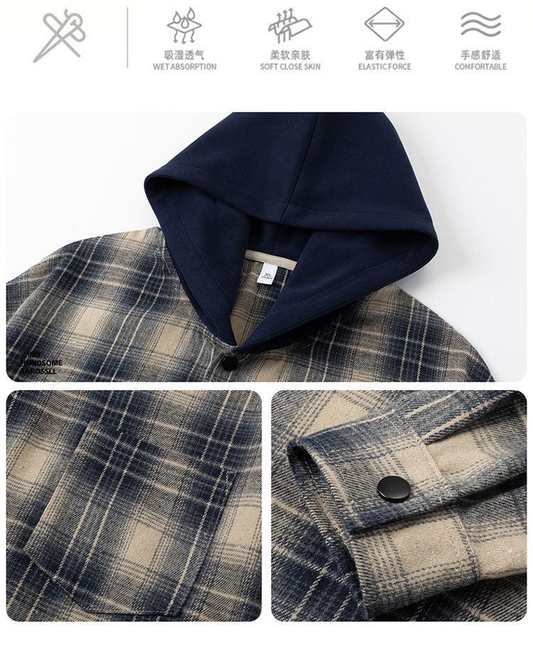 Camisa de Algodón a Cuadros Retro para Hombre Otoño 2025 Transfronteriza con Capucha Suelta Chaqueta de Camisa de Manga Larga para Hombre