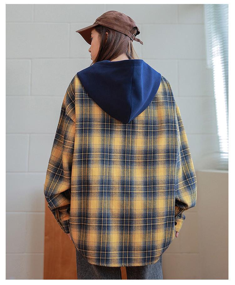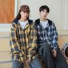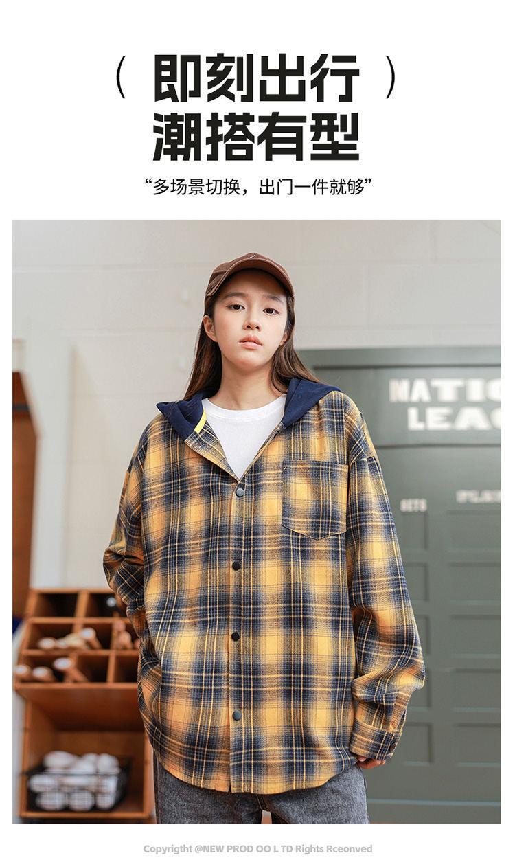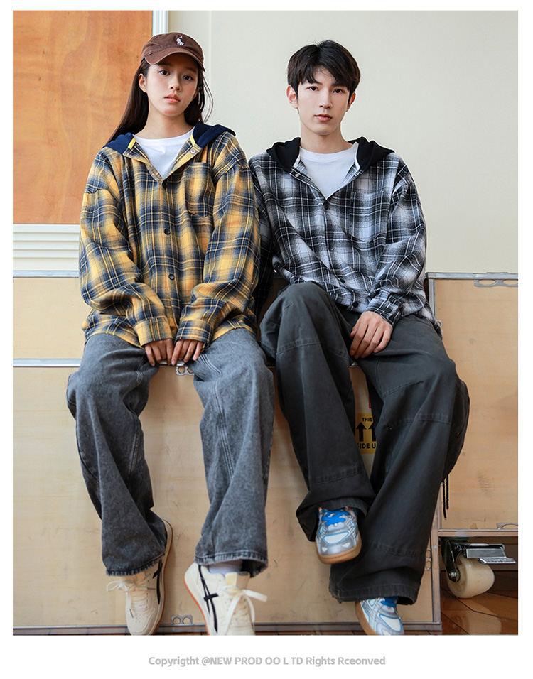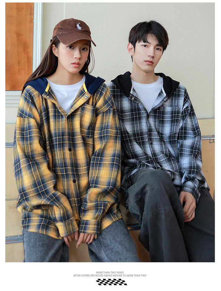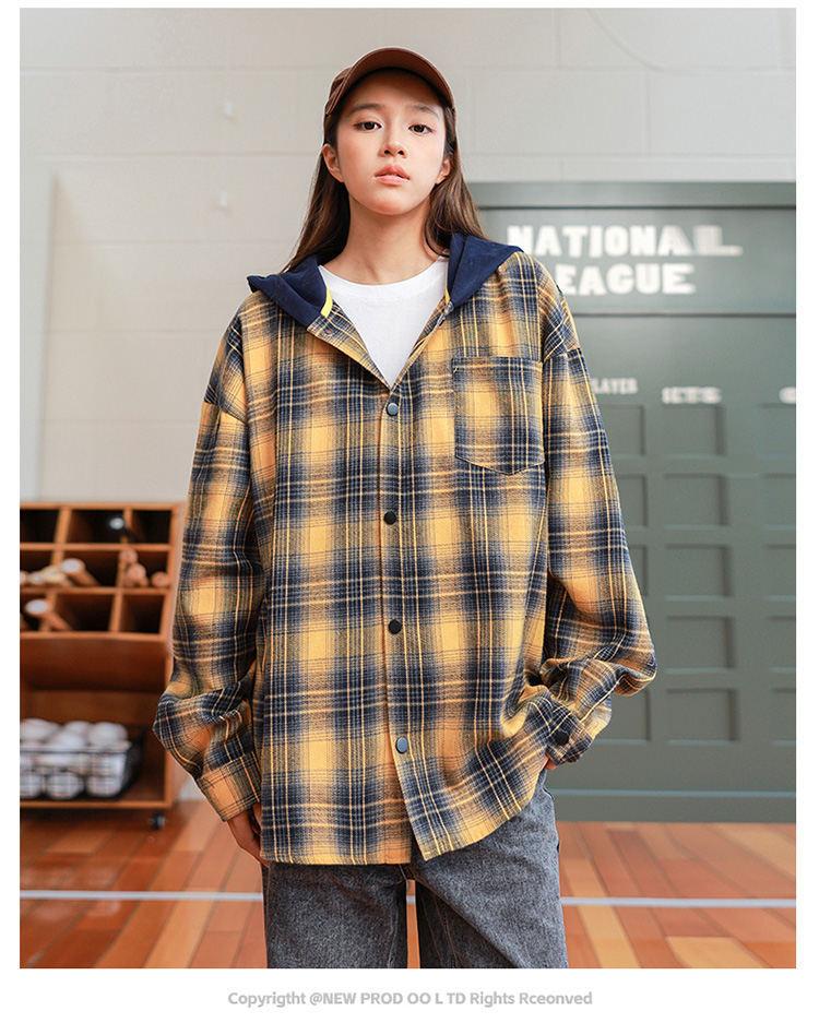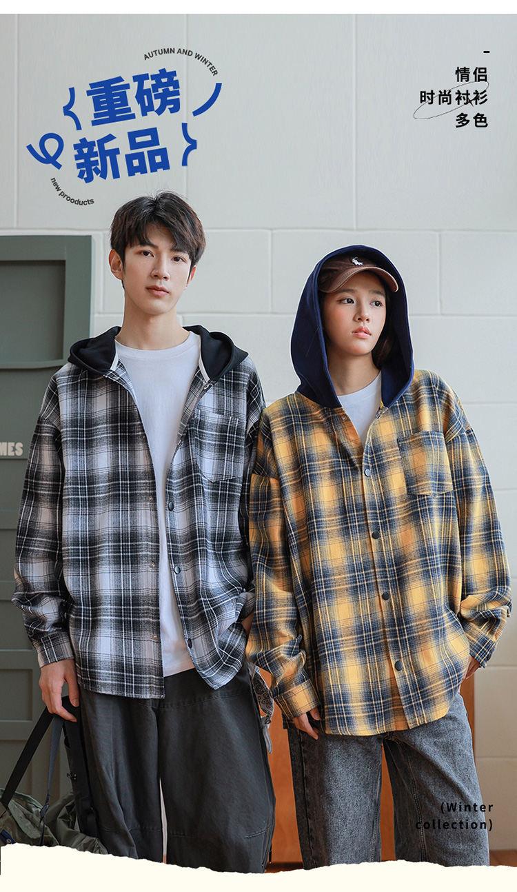 Camisa de Algodón a Cuadros Retro para Hombre Otoño 2025 Transfronteriza con Capucha Suelta Chaqueta de Camisa de Manga Larga para Hombre