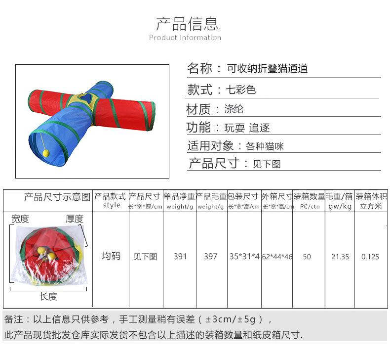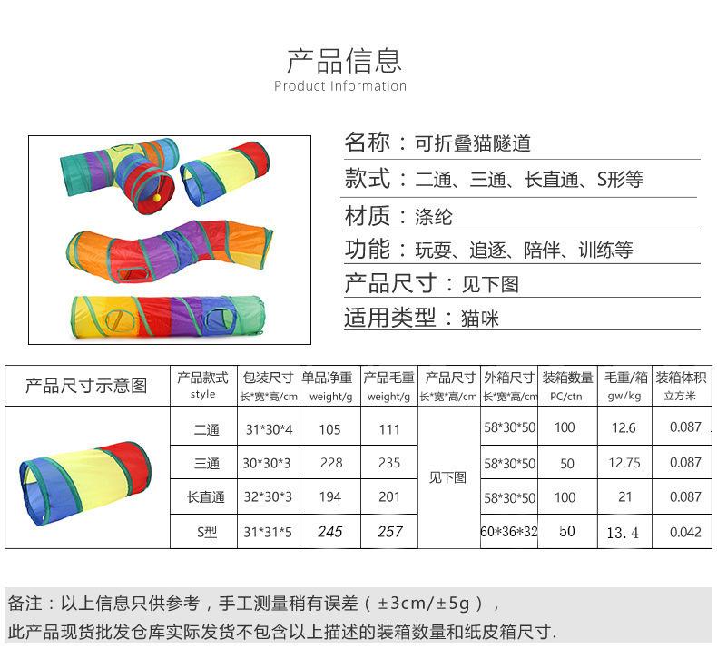 Fabricante Transfronterizo Túnel para Gato Mascota Gato Arcoíris Tres Canales Juguete Interactivo para Gato Barril Perforado Juguete Plegable para Gato