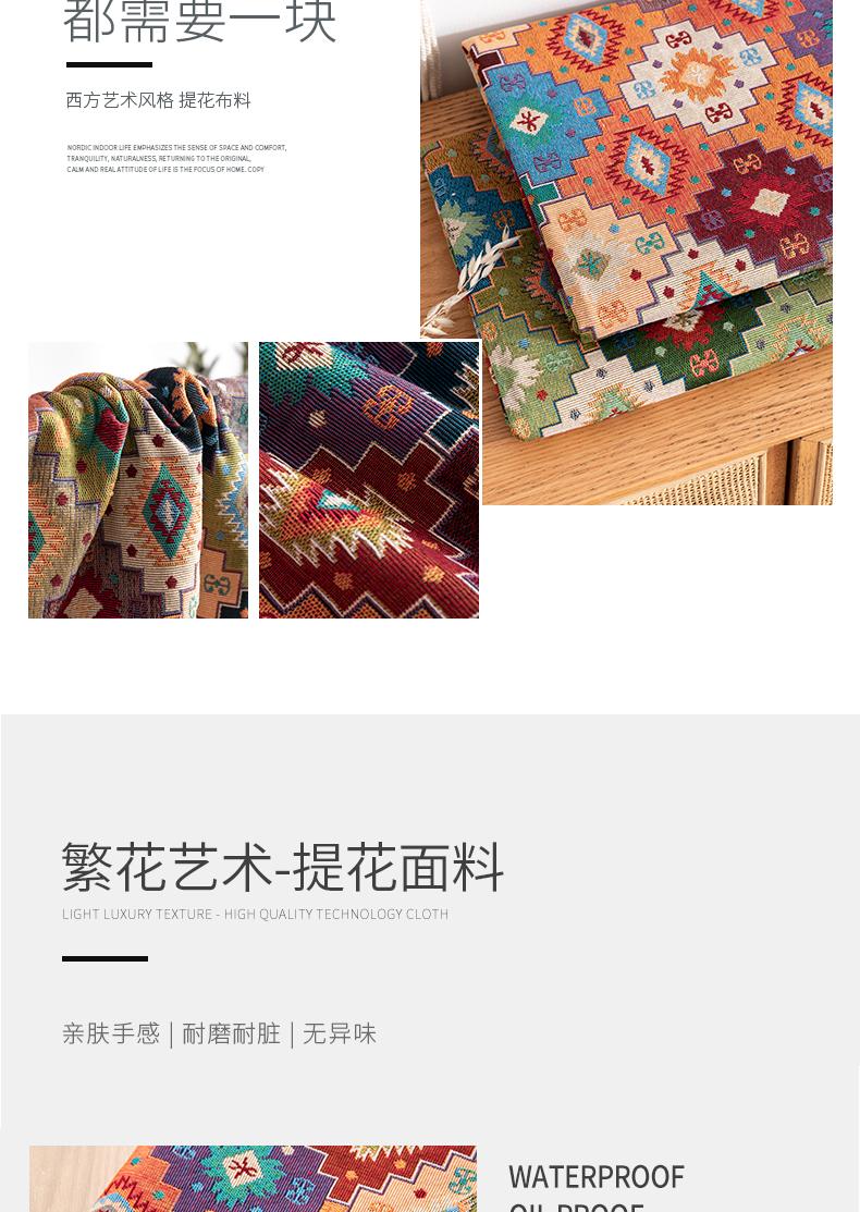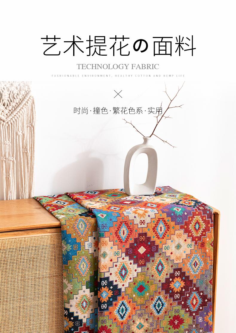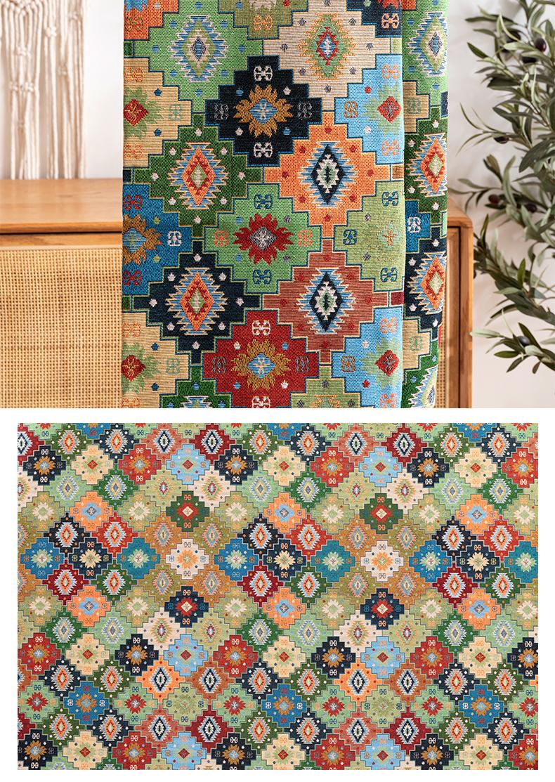 Tela de sofá estilo bohemio, tela jacquard de estilo étnico, mantel hecho a mano, funda de almohada