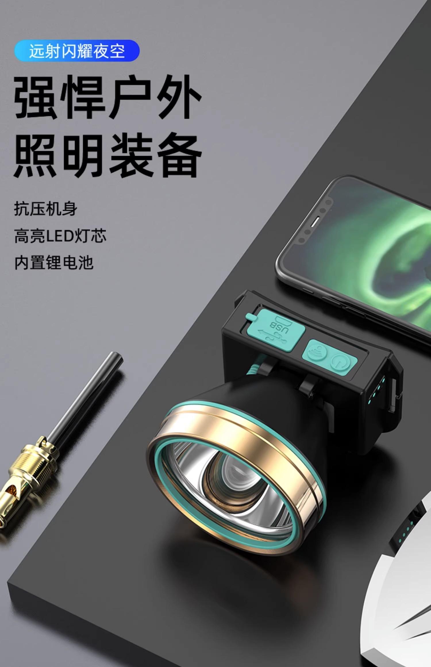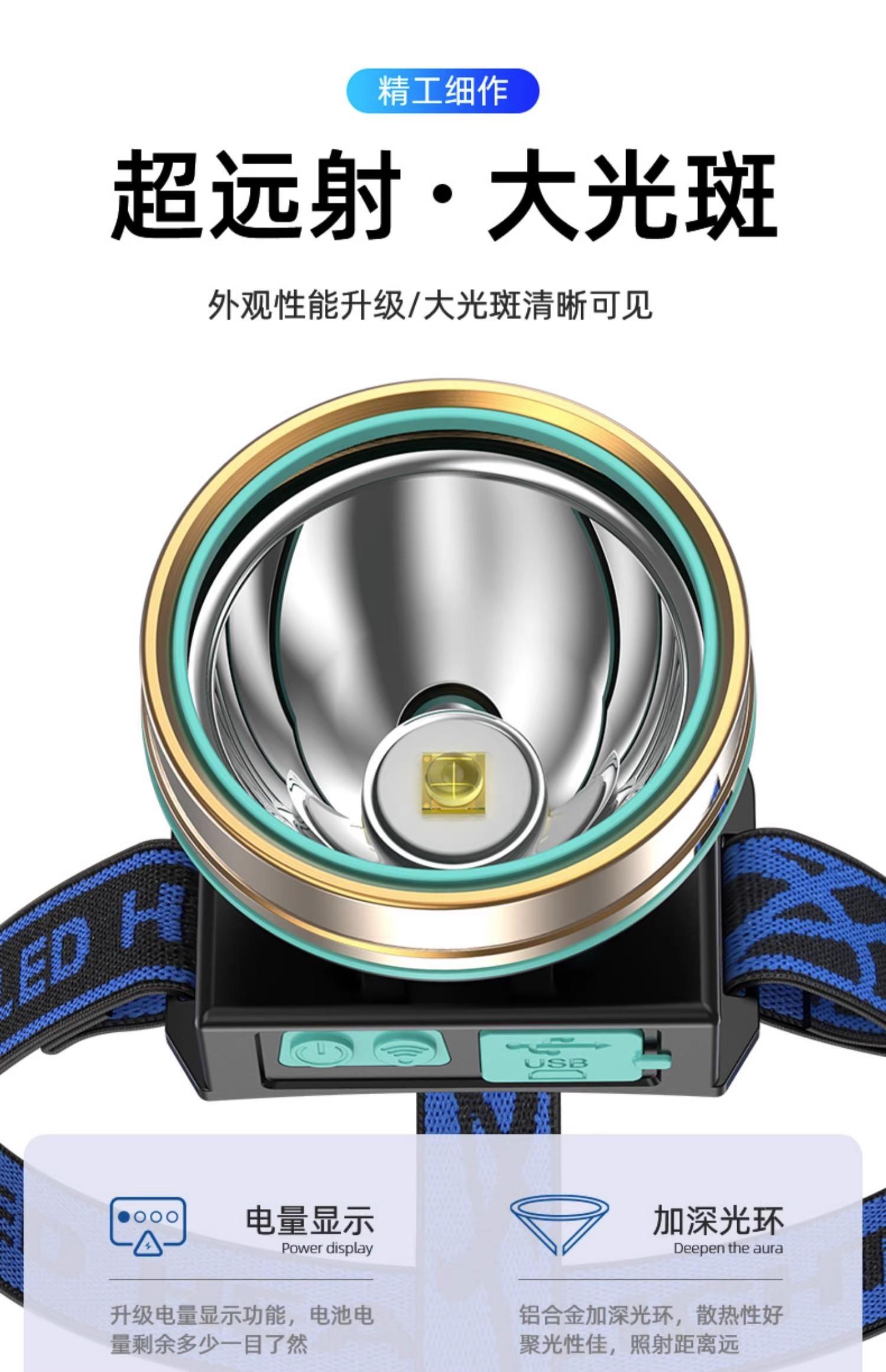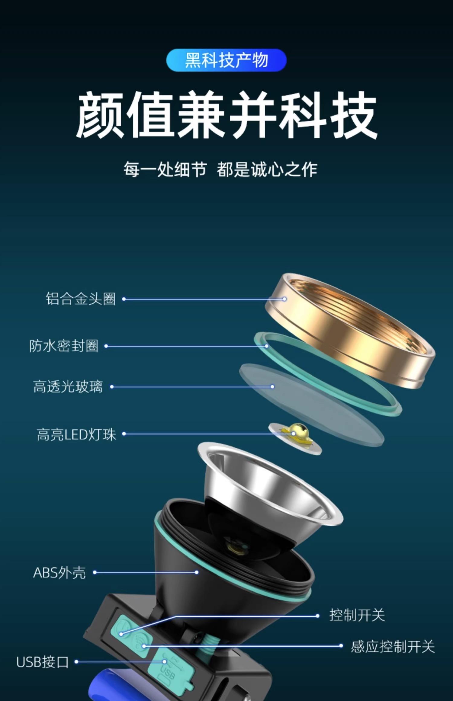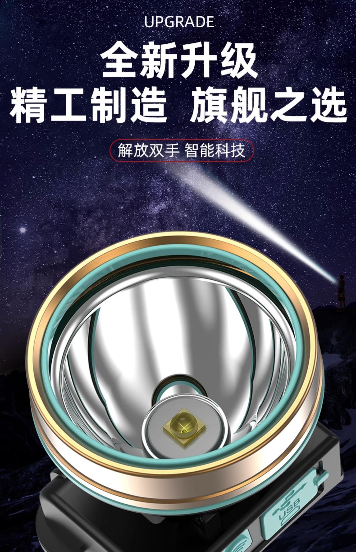 Faro luz fuerte carga súper brillante montado en la cabeza pesca linterna minera súper larga duración inducción iluminación pesca nocturna