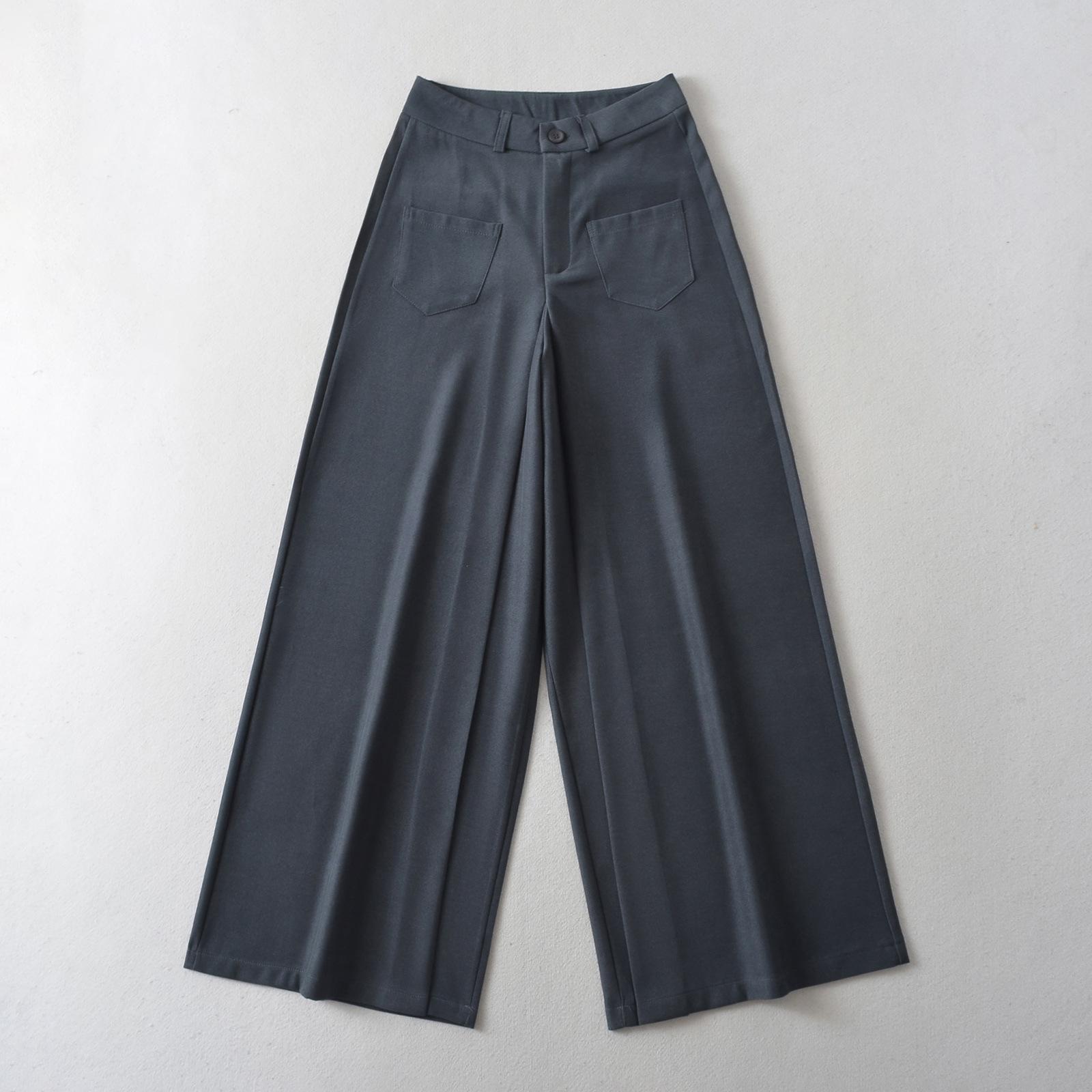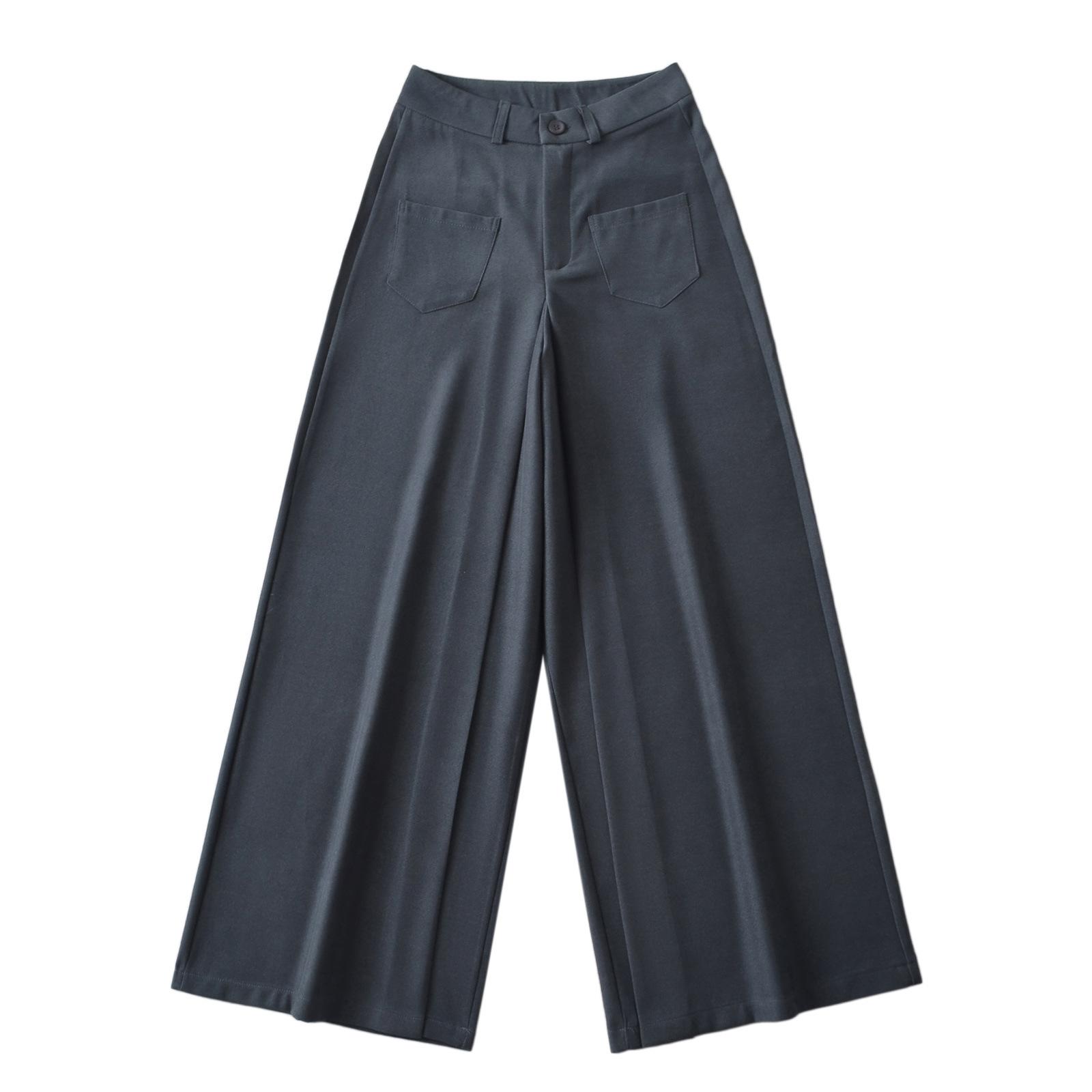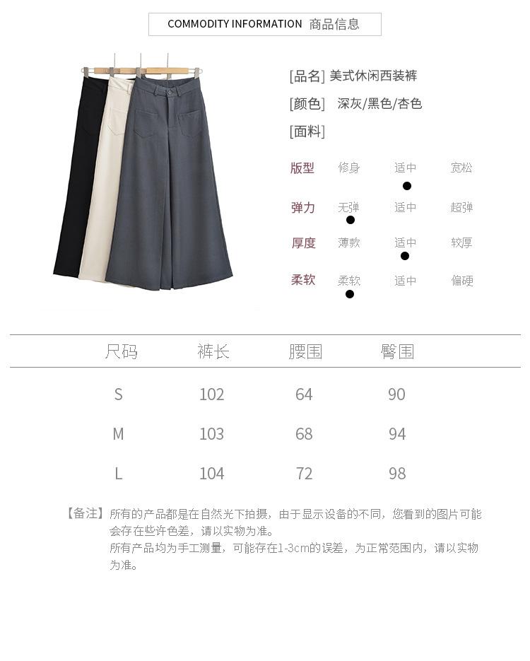 Americano retro nuevo estilo europeo y americano para niña de cintura alta suelto pierna ancha diseño de pierna grande casual traje pantalones