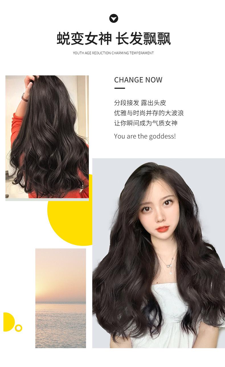 Peluca Peluca para mujer cabello largo verano simulación parche de una pieza extensión de cabello invisible sin costuras simulación de tres piezas cabello largo rizado