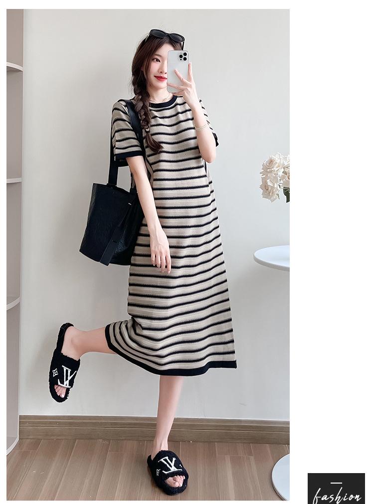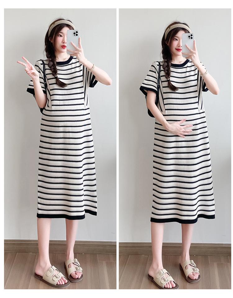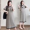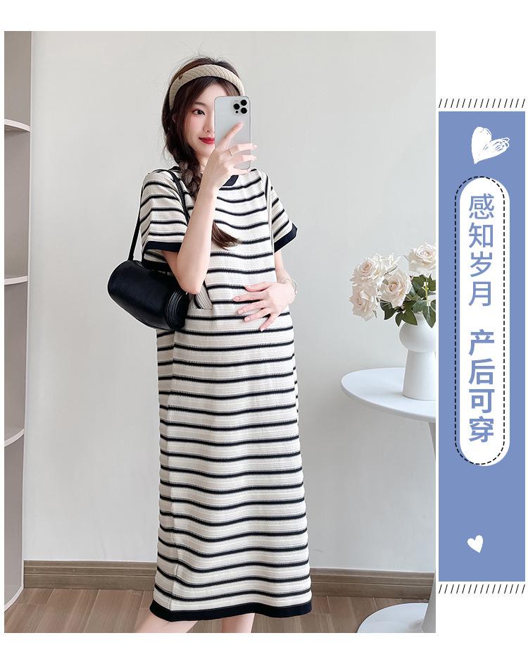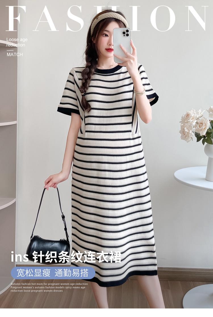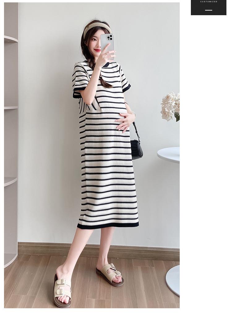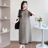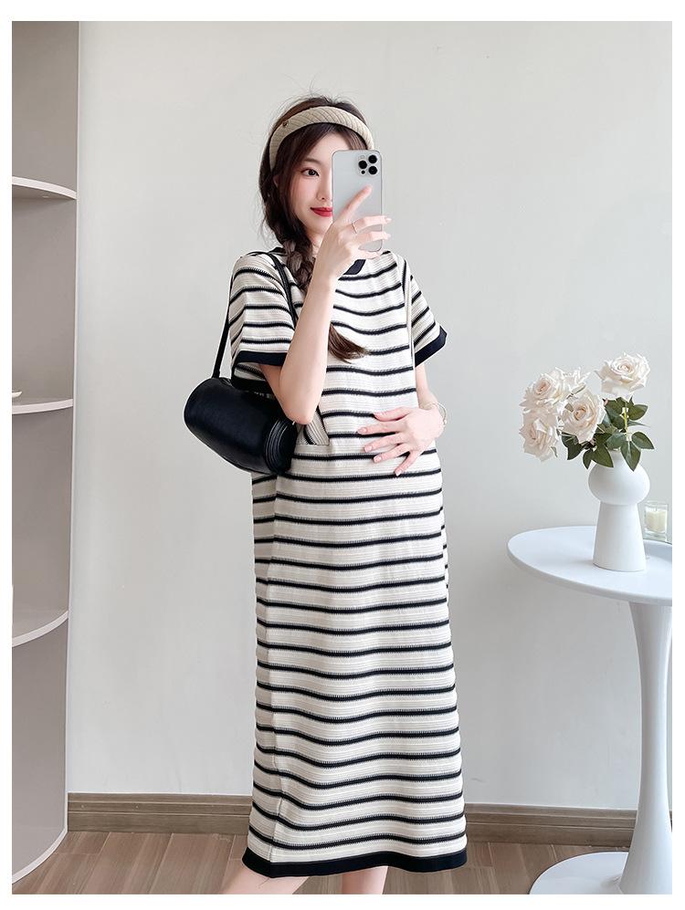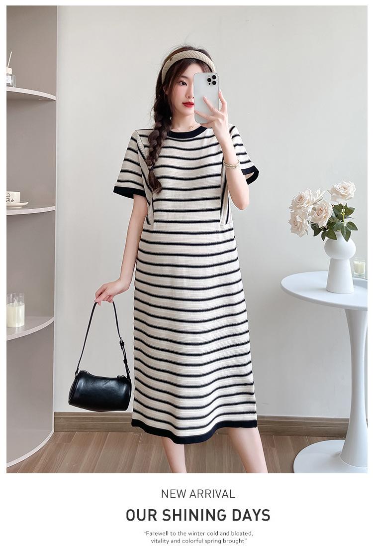 Maternidad 2024 Verano Nuevo Cuello Redondo Rayado Moda Elegante Vestido Camiseta Suelto Talla Grande Vestido para Mujeres Embarazadas