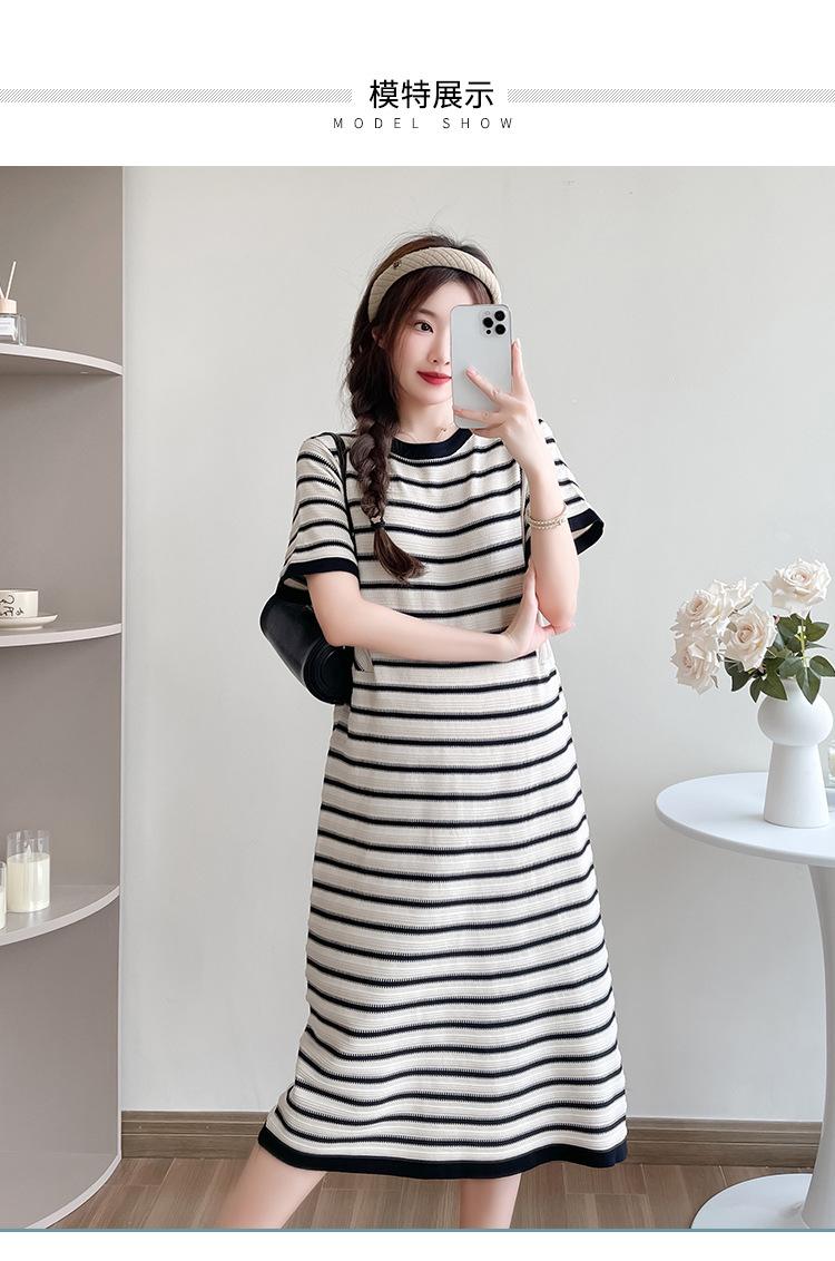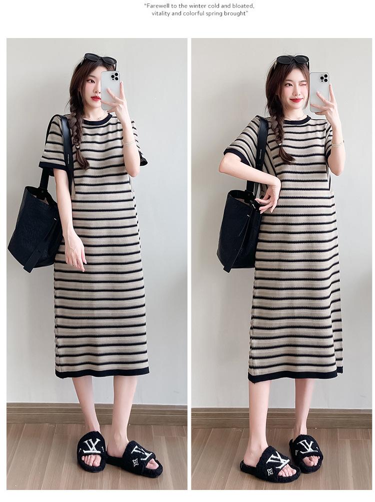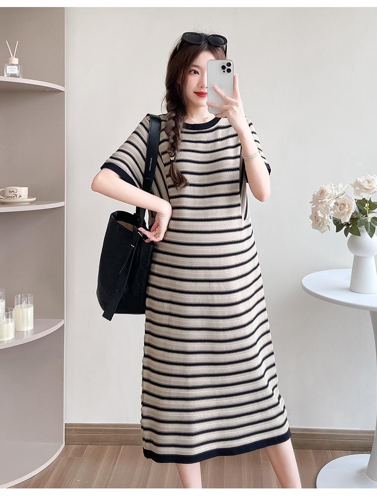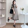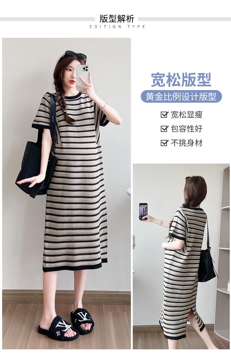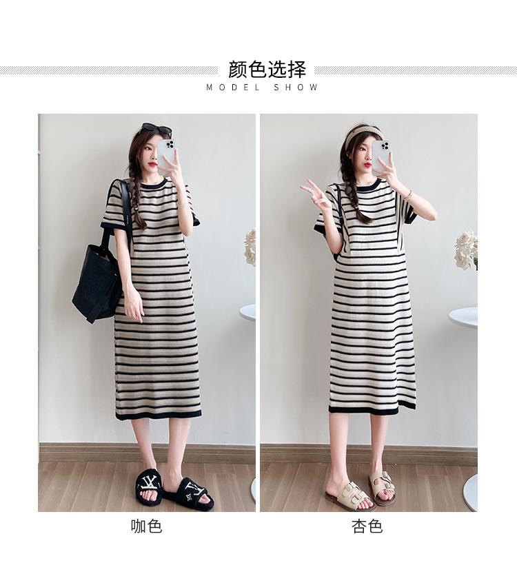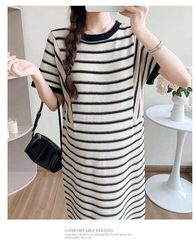 Maternidad 2024 Verano Nuevo Cuello Redondo Rayado Moda Elegante Vestido Camiseta Suelto Talla Grande Vestido para Mujeres Embarazadas