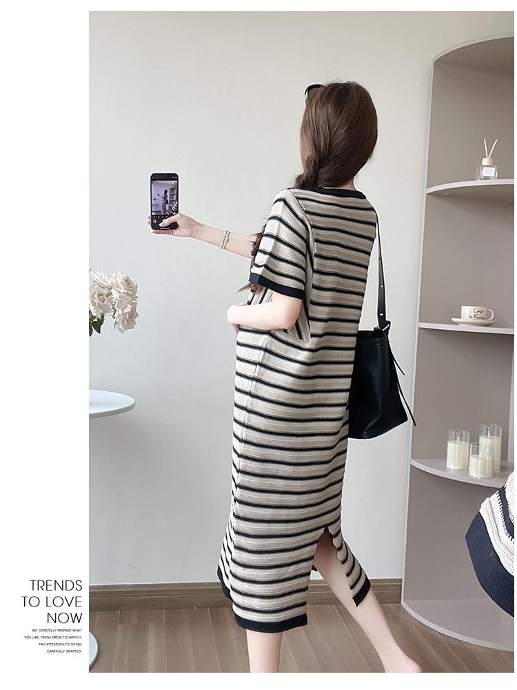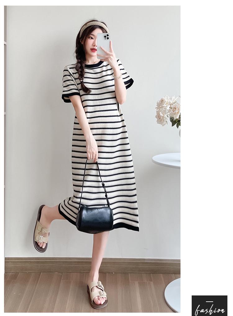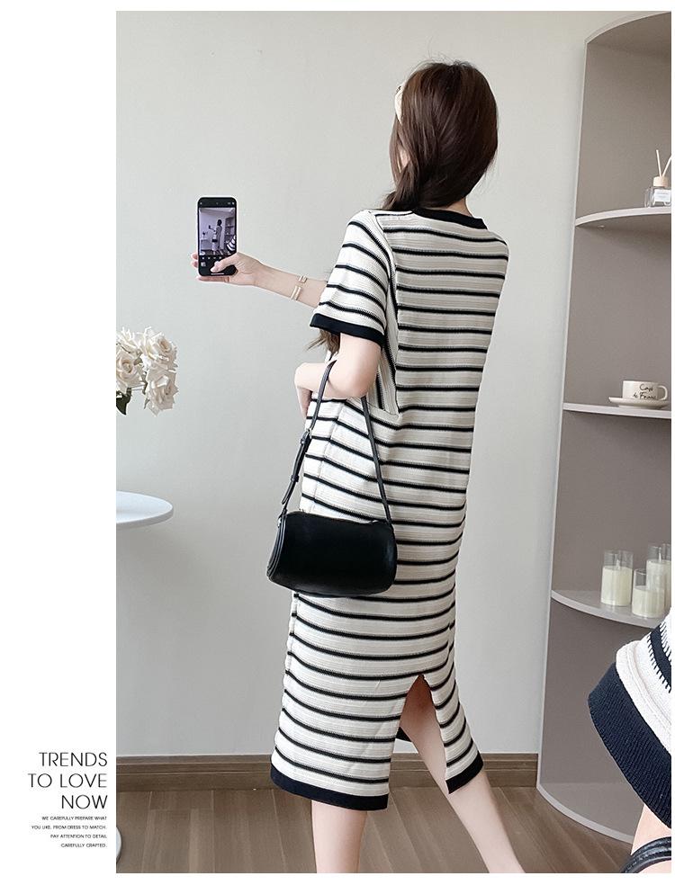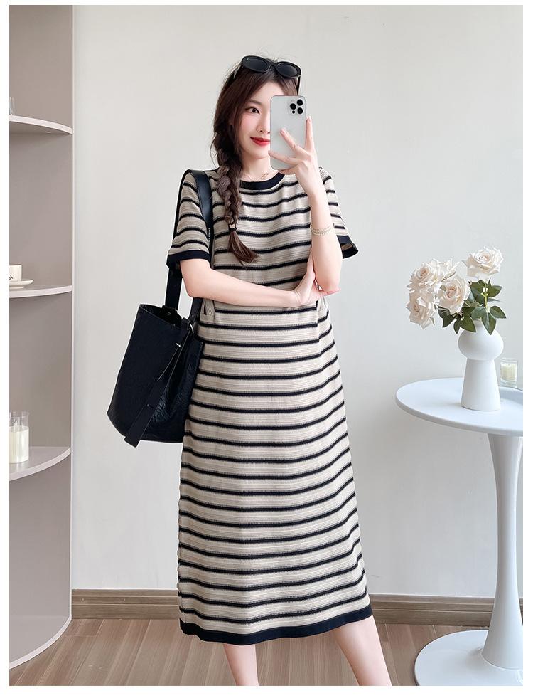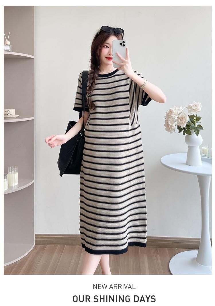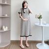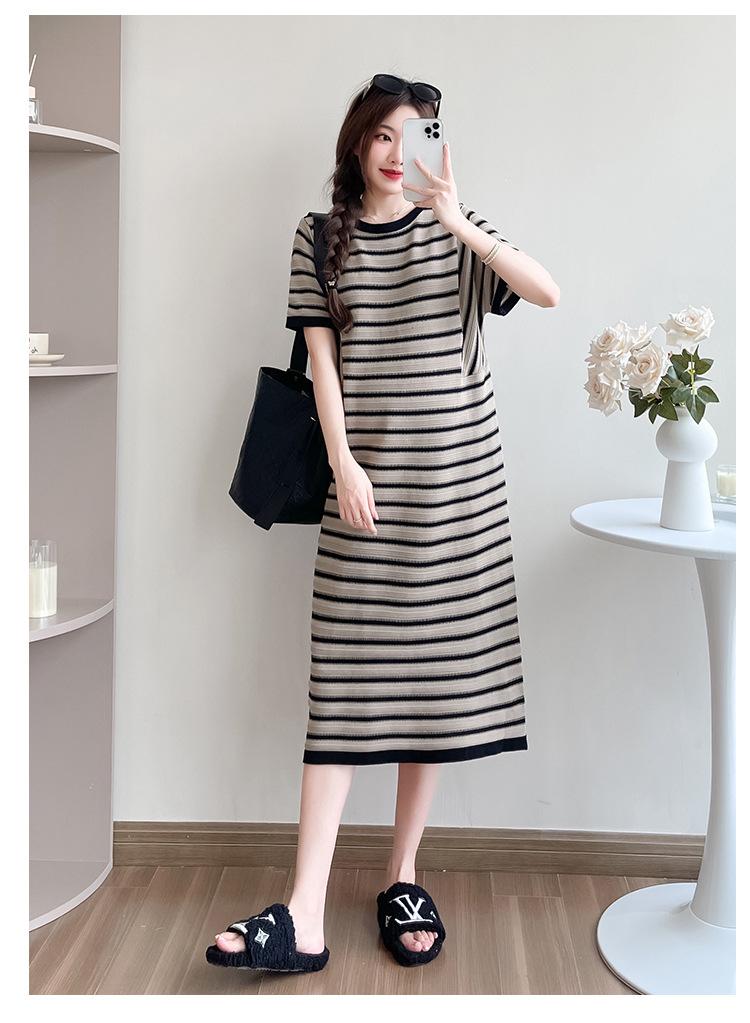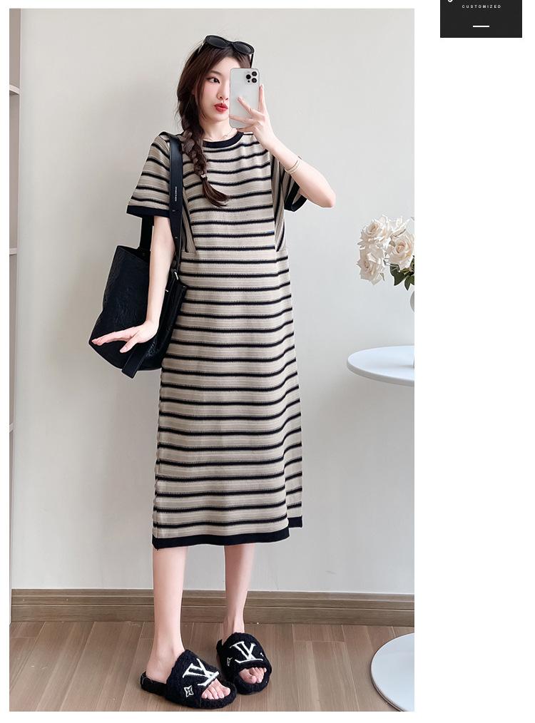 Maternidad 2024 Verano Nuevo Cuello Redondo Rayado Moda Elegante Vestido Camiseta Suelto Talla Grande Vestido para Mujeres Embarazadas