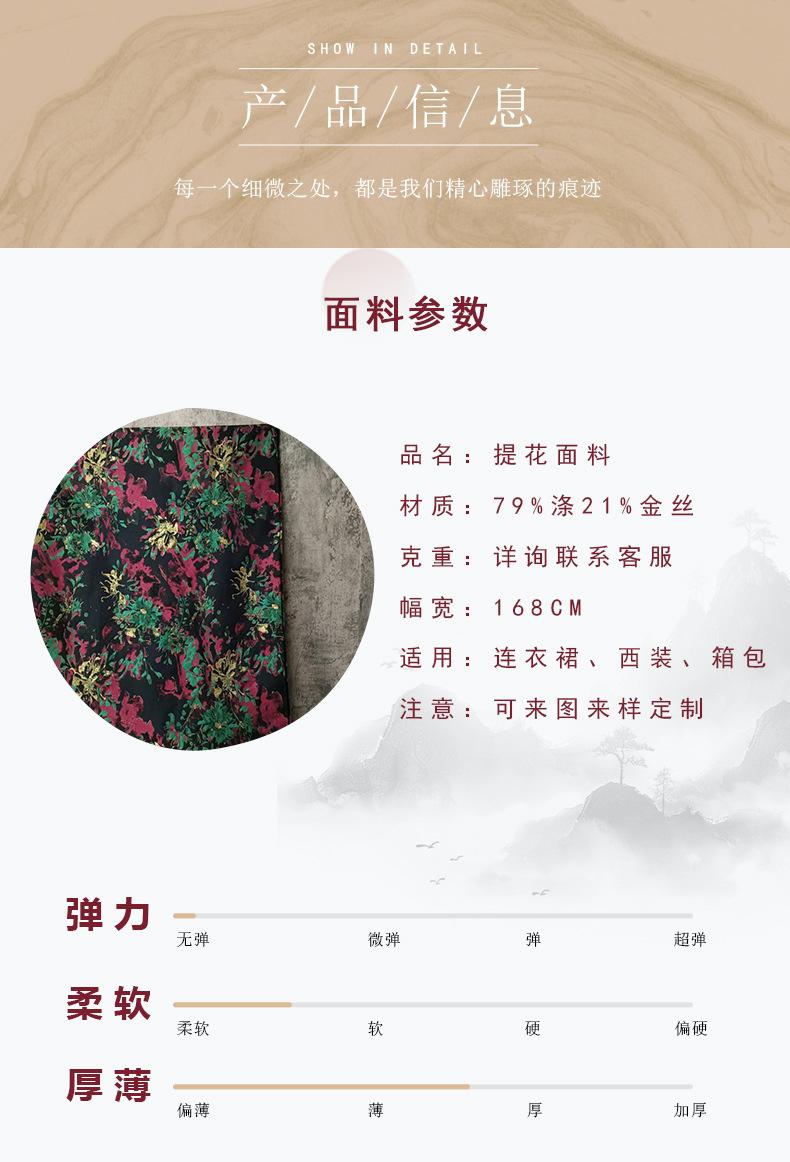 Retro Colorido Brillante Hilo Dorado Flor Grande Tejido Jacquard Tejido a Color Vestido de Noche Bolsos de Moda Tela DIY