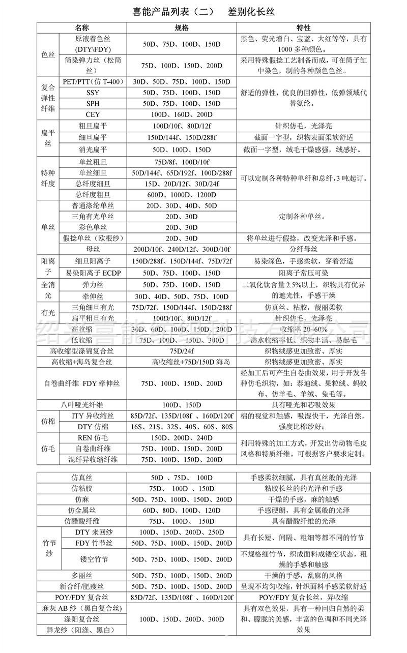 2Series diferenciadas: Doris, nueva fibra sintética, hilo de alta contracción, hilo de baja contracción, imitación seda de algodón, imitación seda de lino, imitación lana, imitación seda, imitación viscosa, imitación acetato, imitación nailon, seda gorda y fina, seda autorizada, seda madre, monofilamento coloreado, seda plana, fibra regenerada ecológica