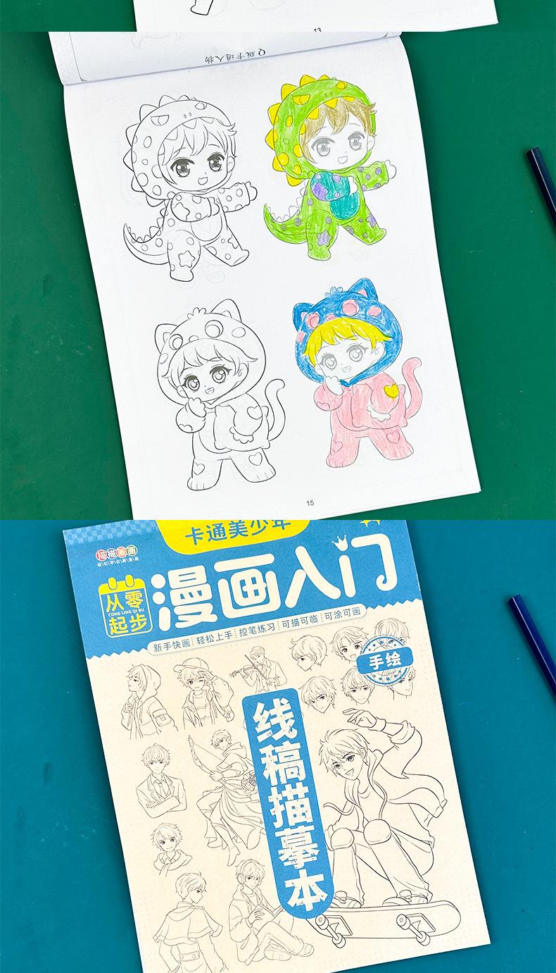 Libro de Trabajo de Dibujo a Mano para Principiantes de Dibujos Animados para Niños Calco para Principiantes Autodidactas Calco de Base Cero Personajes de Dibujos Animados Rojos