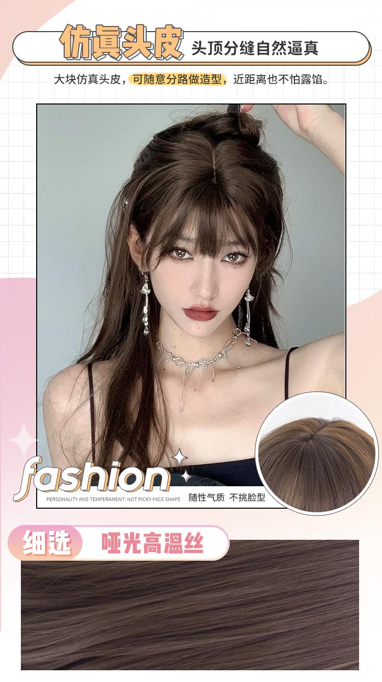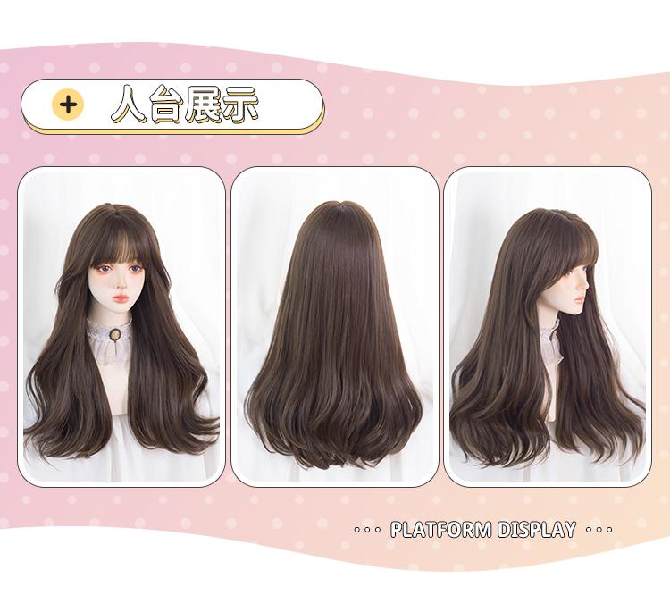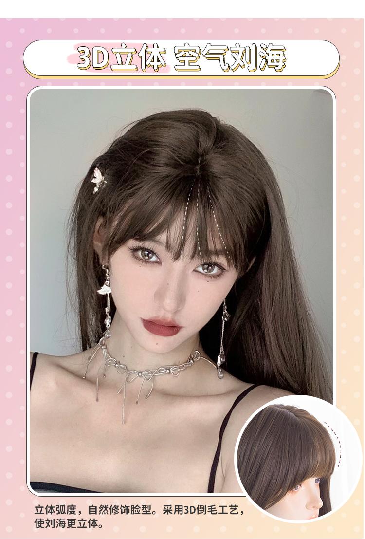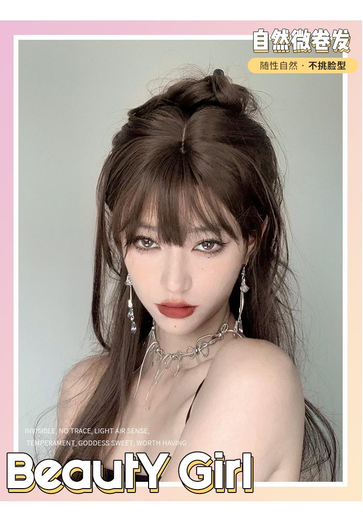 Peluca para Mujer Cabello Largo Verano Natural Mediano Largo Rizado Realista Cara Redonda lolita Cubre Cabeza Completa Peluca Larga Lisa Negra