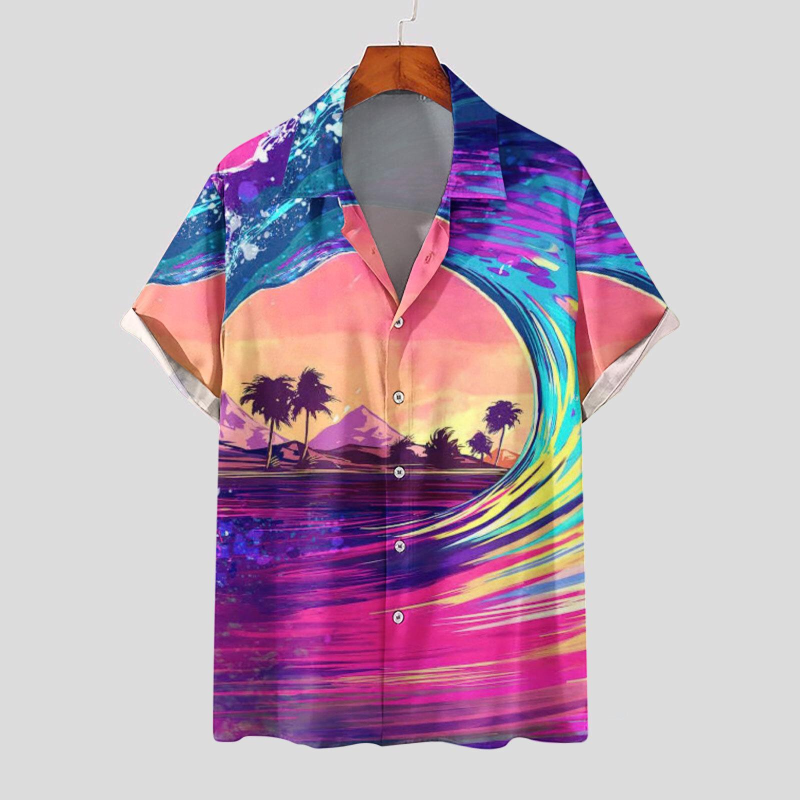 Comercio exterior transfronterizo verano nuevo talla grande moda casual para hombre camisa de manga corta estilo playa con estampado digital 3D