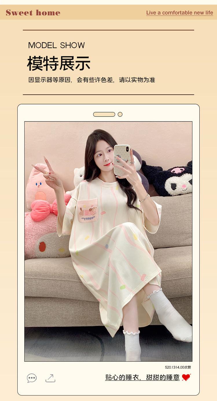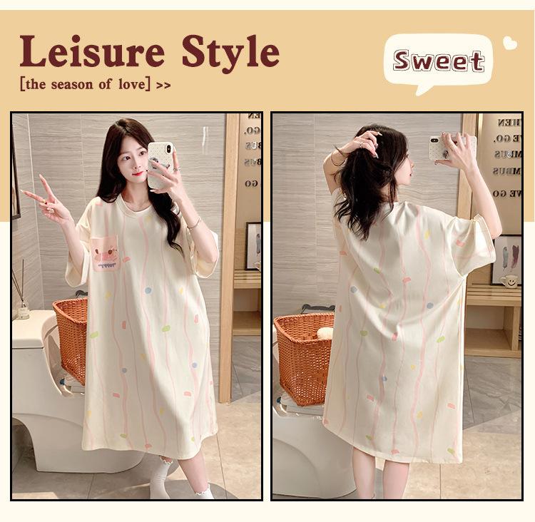 Camisón de Algodón Puro para Mujer Verano 2025 Nuevo Pijama Holgado Manga Corta Delgado Estilo Dulce Vestido de Niña Talla Grande