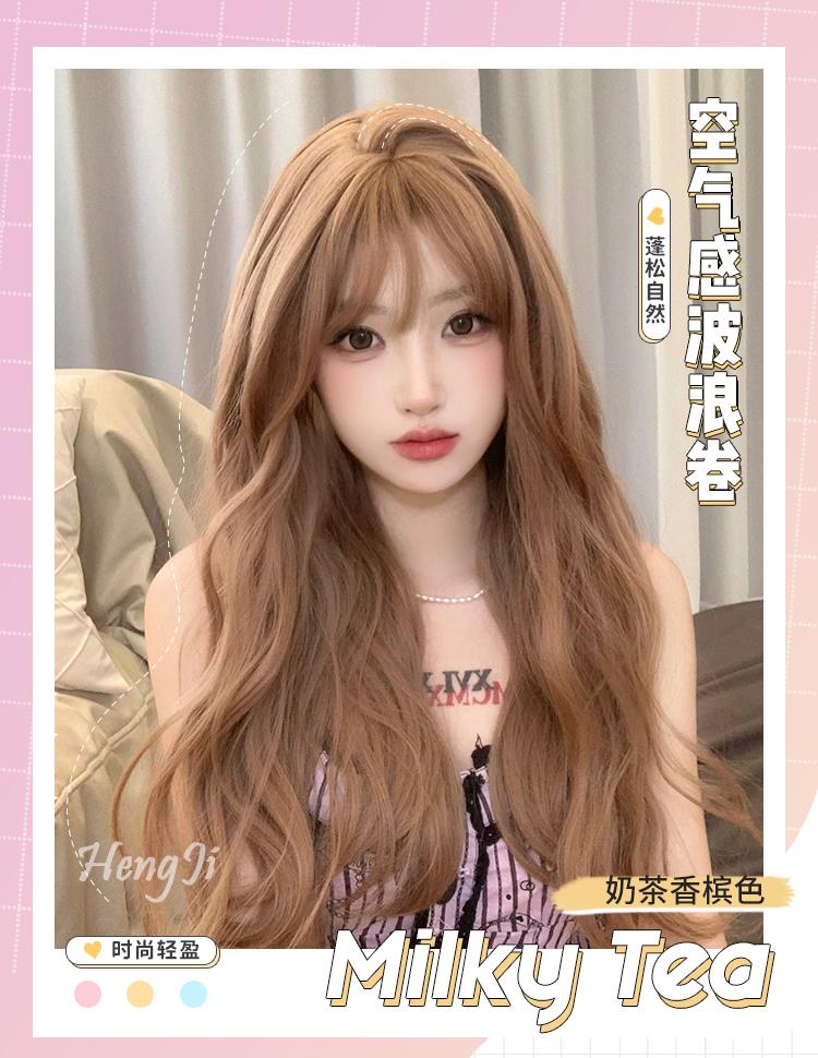 Peluca al por mayor transfronteriza para mujer de cabello largo Verano cobertura completa Naranja onda grande peluca larga rizada peluca lolita