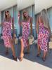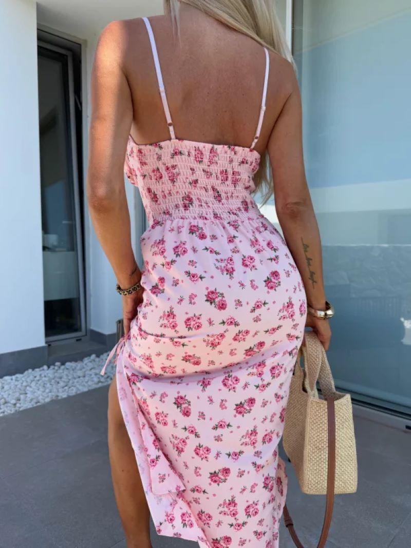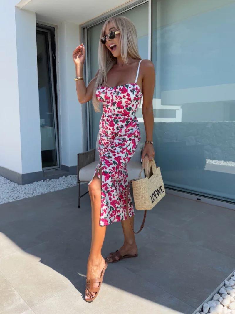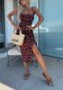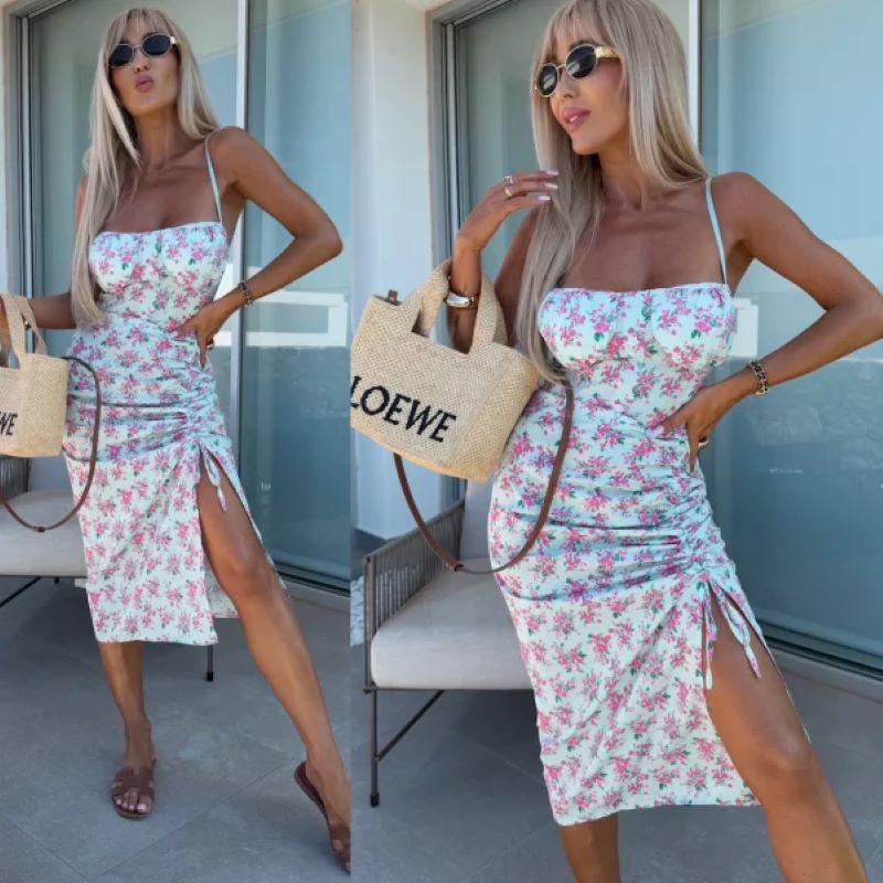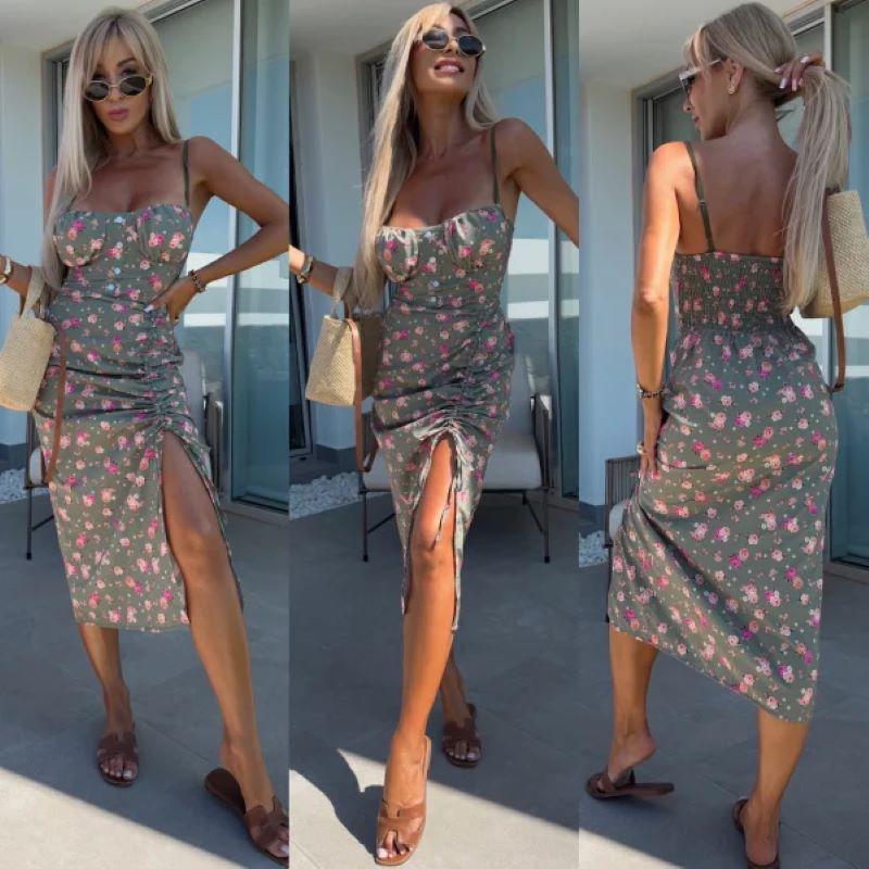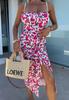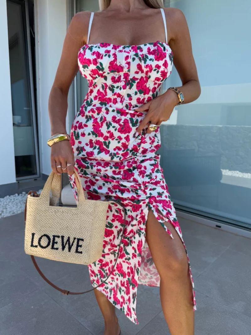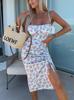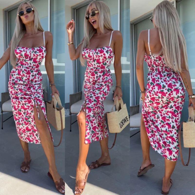 Vestido de Tirantes Estampado Sexy para Mujer 2025 Amazon Ins Nuevo Francés Slim Abertura Falda Larga