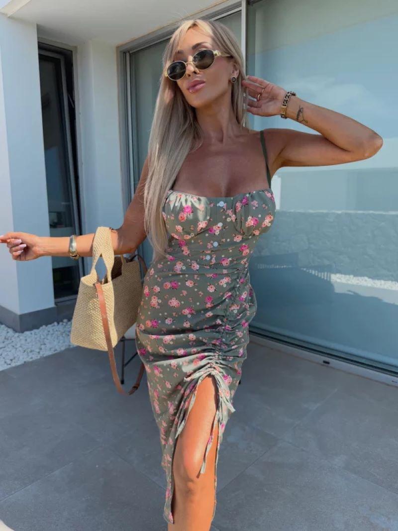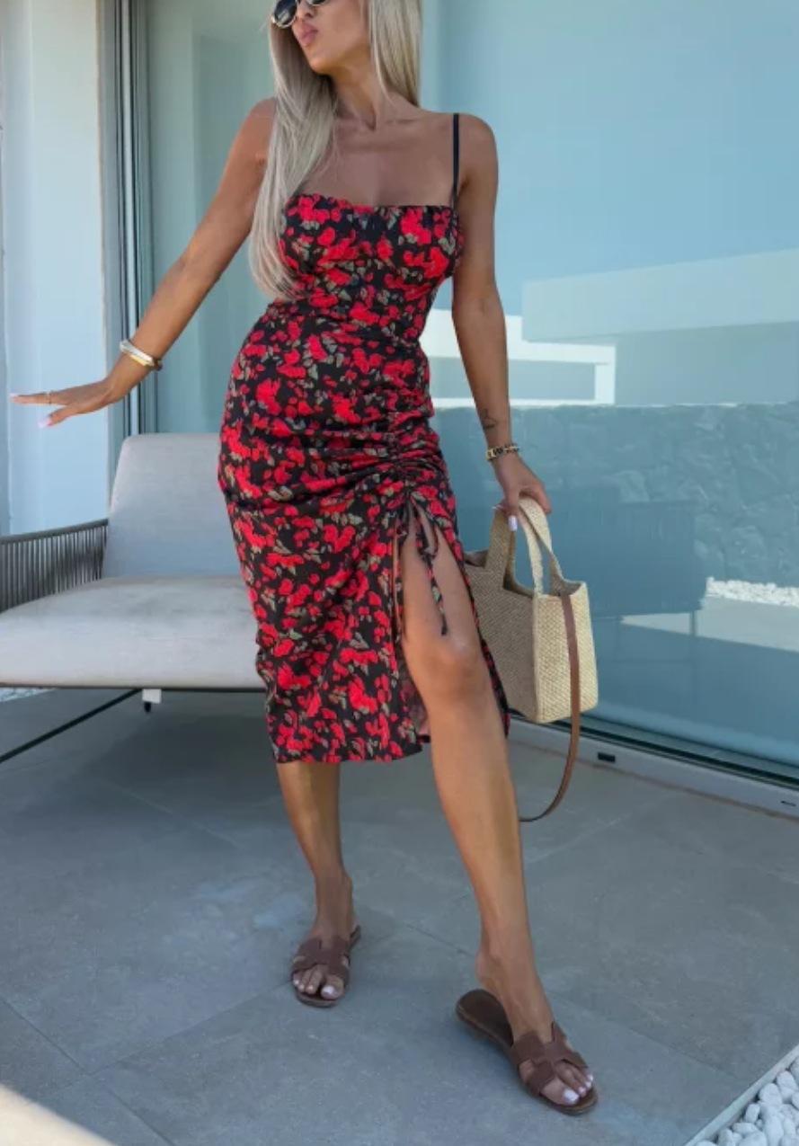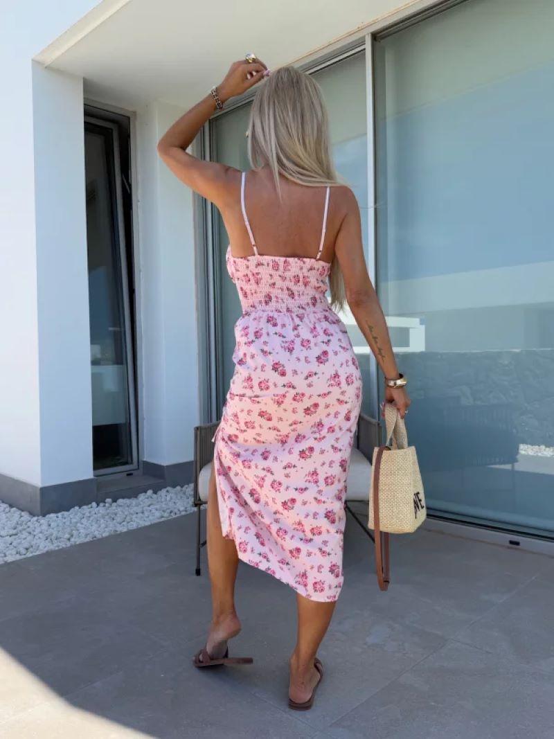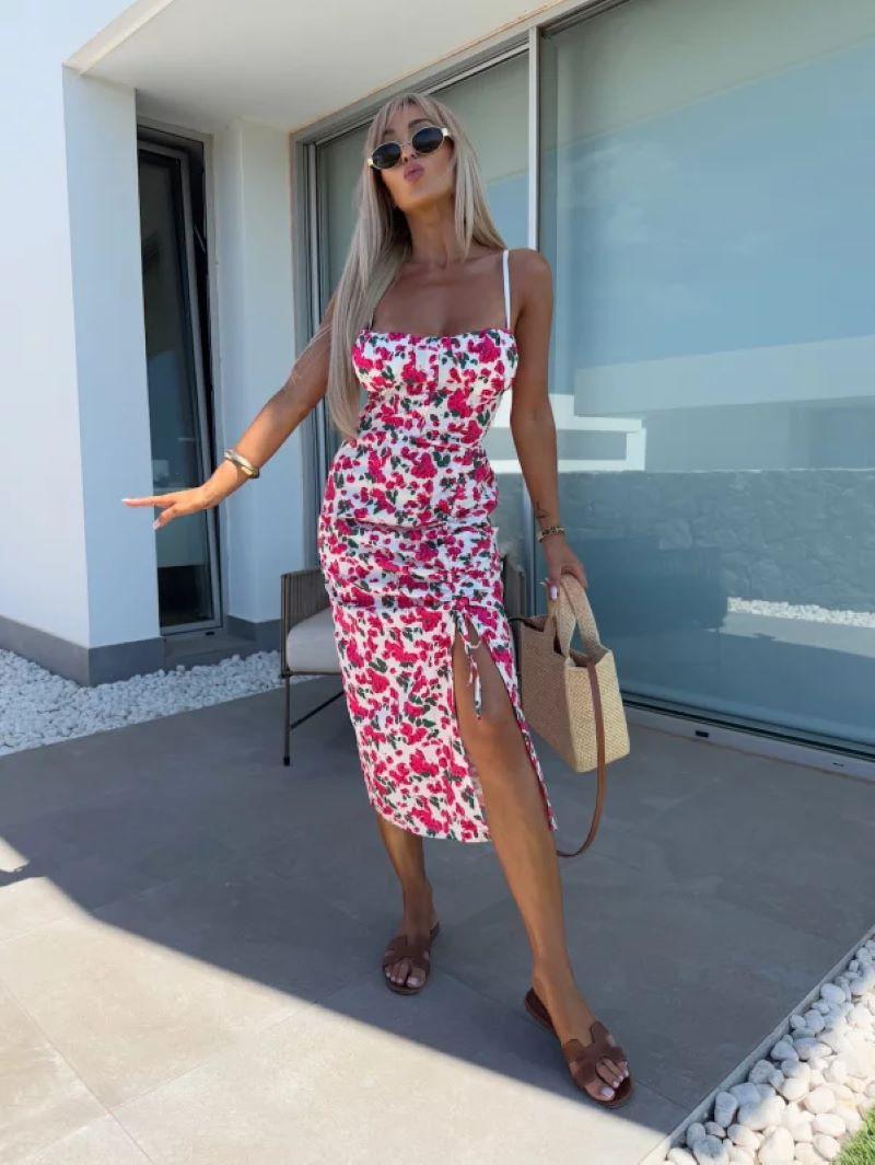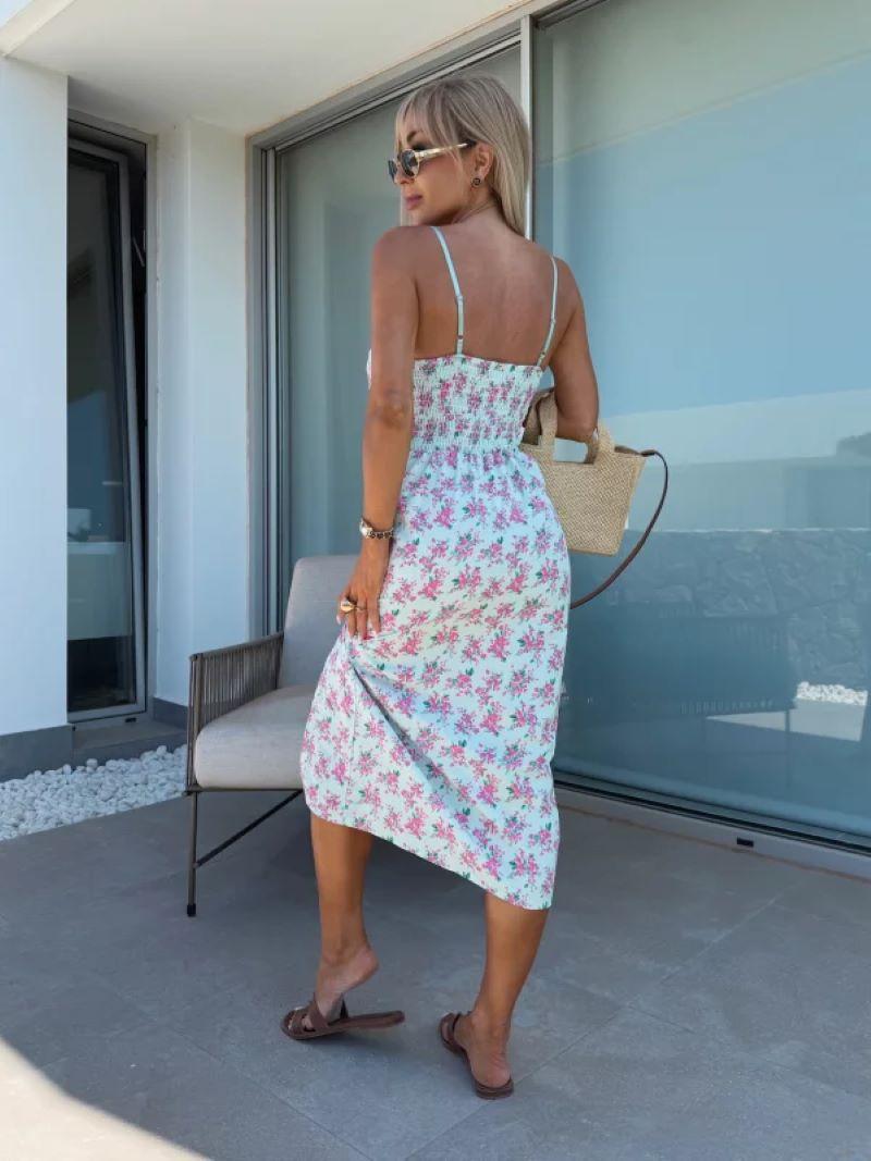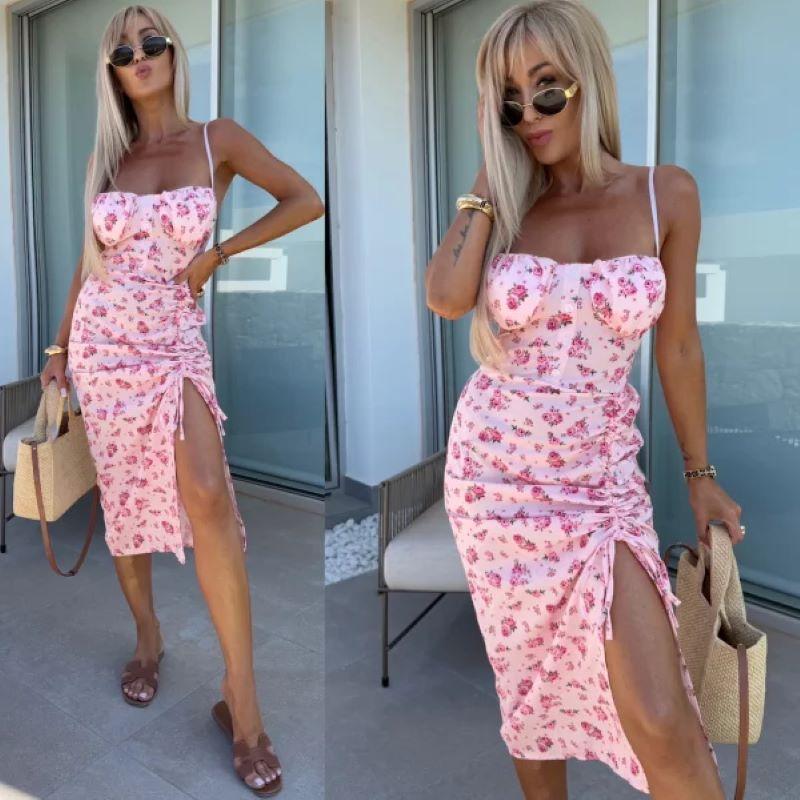 Vestido de Tirantes Estampado Sexy para Mujer 2025 Amazon Ins Nuevo Francés Slim Abertura Falda Larga