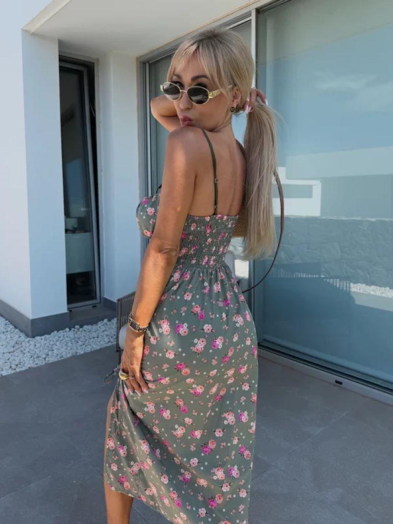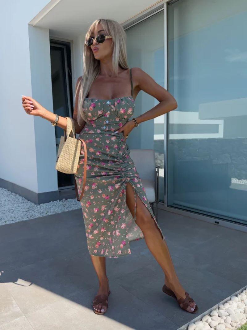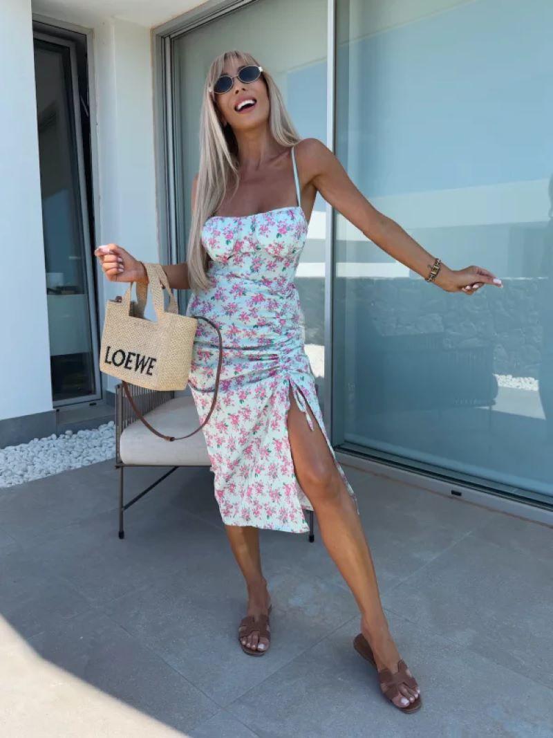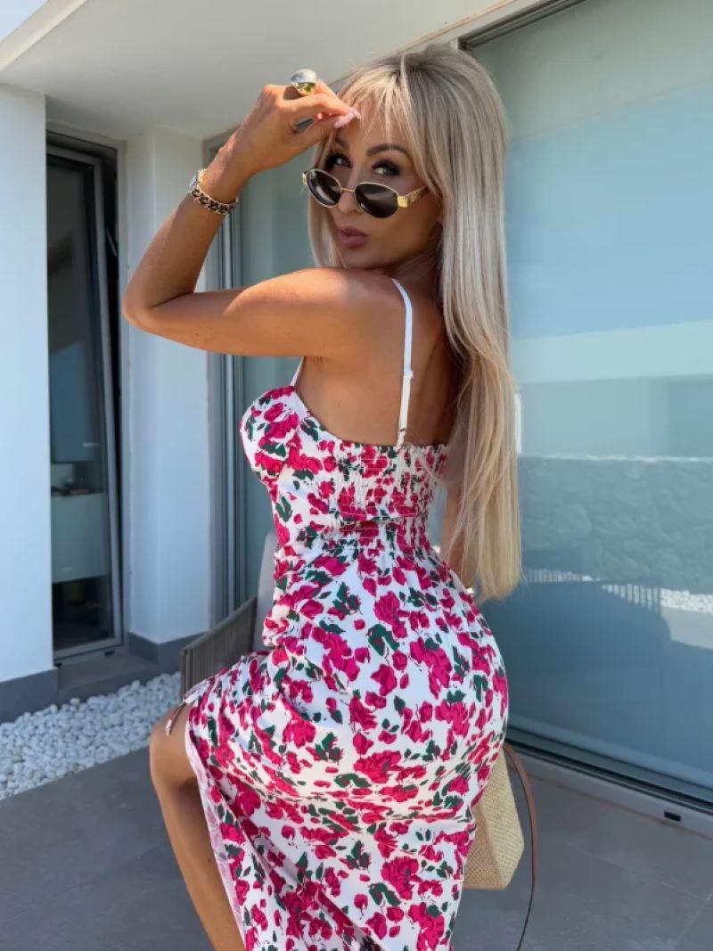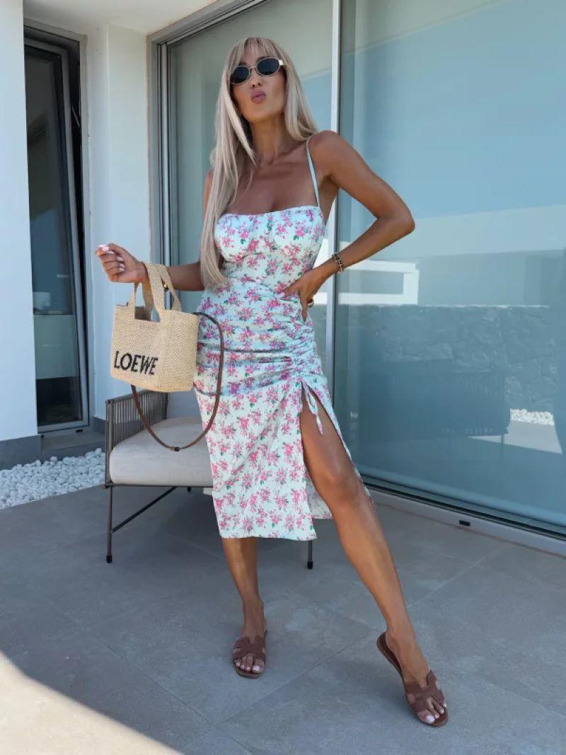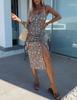 Vestido de Tirantes Estampado Sexy para Mujer 2025 Amazon Ins Nuevo Francés Slim Abertura Falda Larga