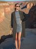2025 Nuevo Cortavientos Cruzado Europeo y Americano de Largo Medio para Mujer Diseño de Estilo Británico Doble Botonadura con Cinturón