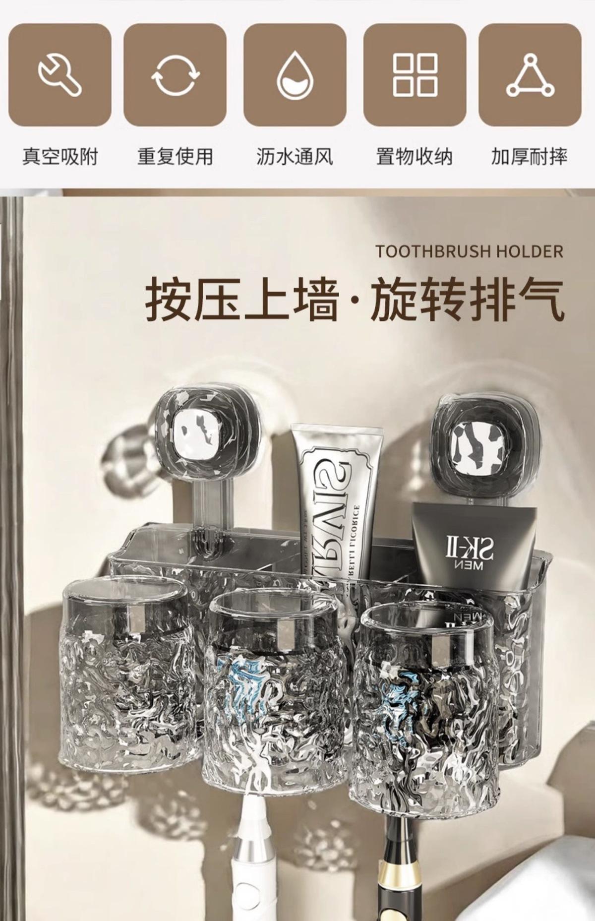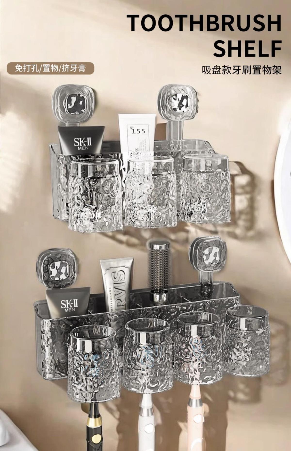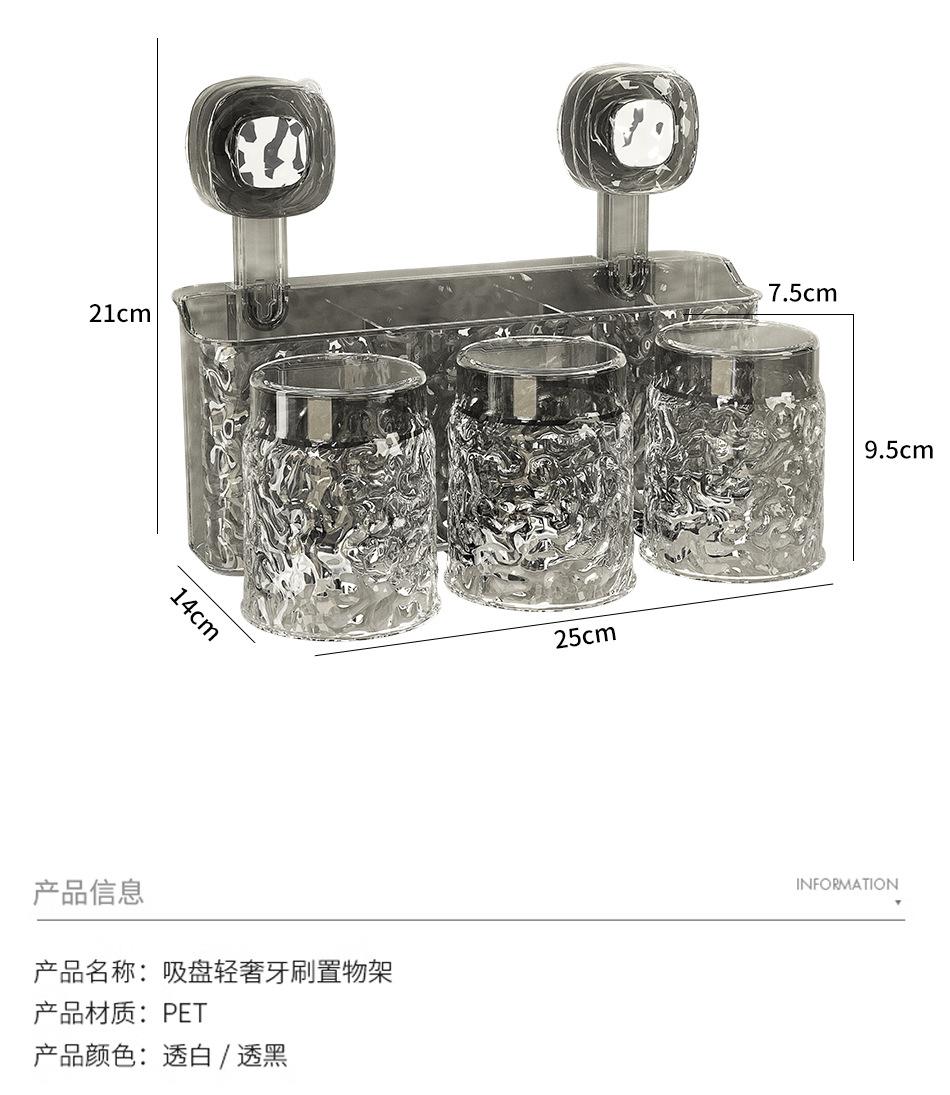Transparent white double cup-suction cup toothbrush holder, Transparent gray double cup-suction cup toothbrush...