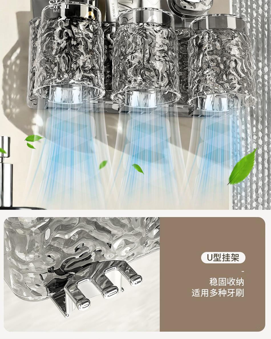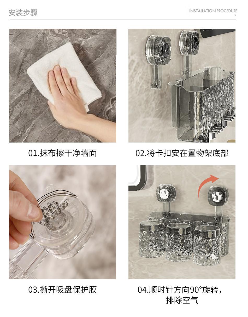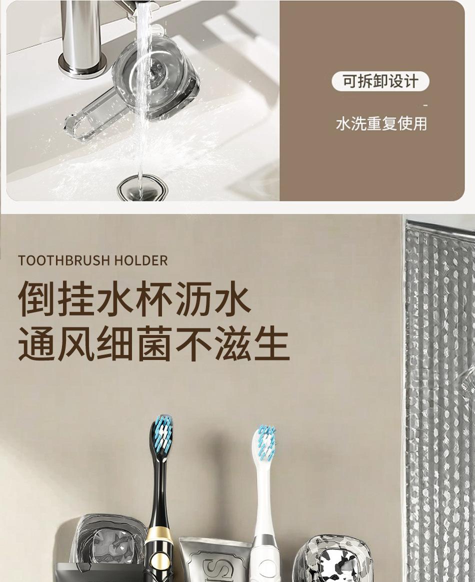 Transparent white double cup-suction cup toothbrush holder, Transparent gray double cup-suction cup toothbrush...