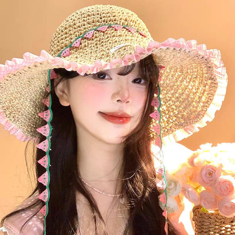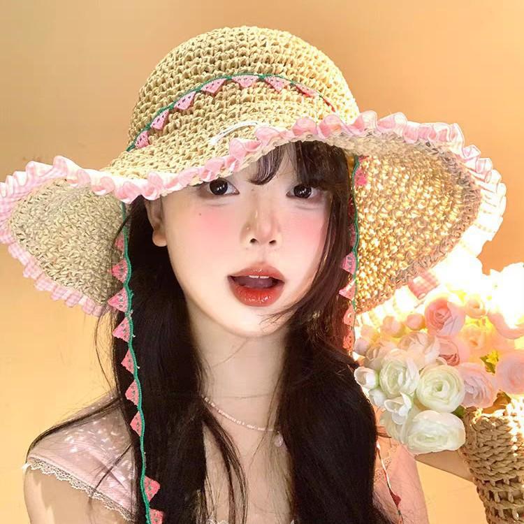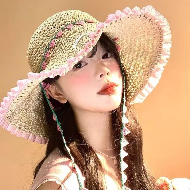 Compra Vacaciones Junto al Mar Sombrero de Paja Trenzado con Flores Dulces con Recortes para Mujer Verano 2025 Nuevo Sombrero para el Sol Sombrero de Ala Ancha para Protección Solar al por mayor en Joom.pro