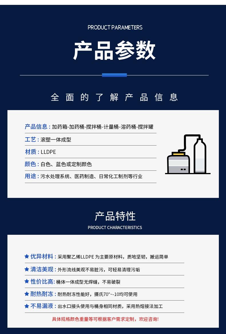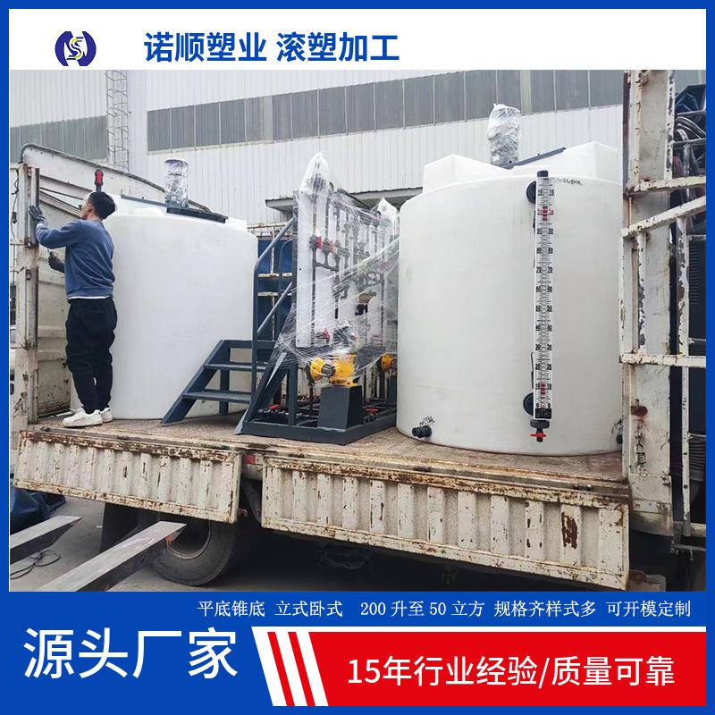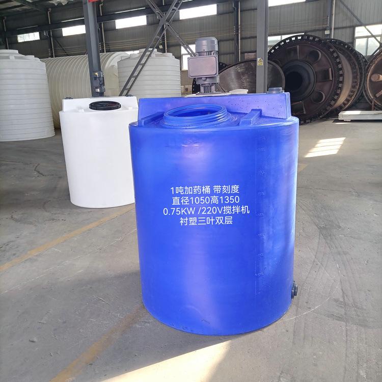Tanque de dosificación de PE de 1 tonelada para tratamiento de agua, Moldeo rotacional, Fondo plano vertical, Fondo cónico engrosado, Tanque de mezcla de plástico, Resistente a la corrosión