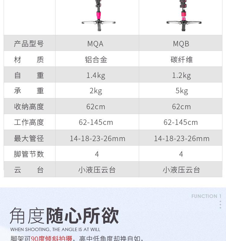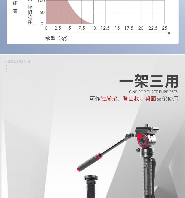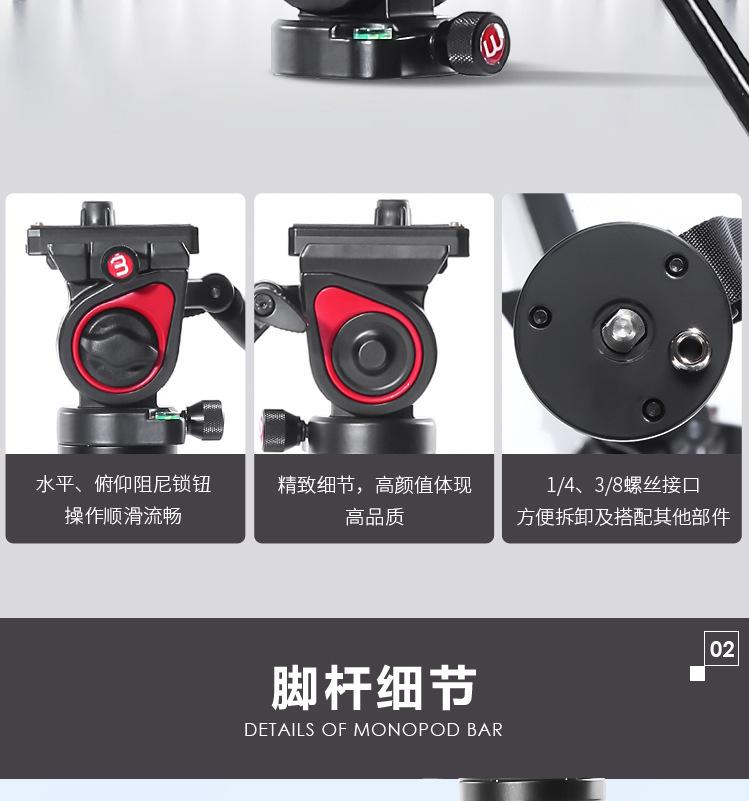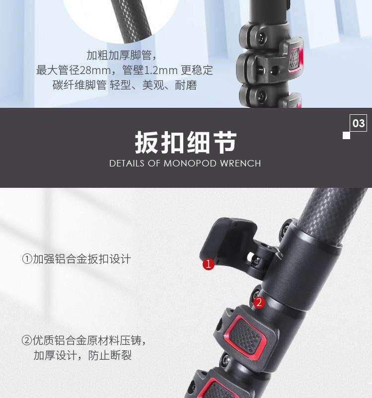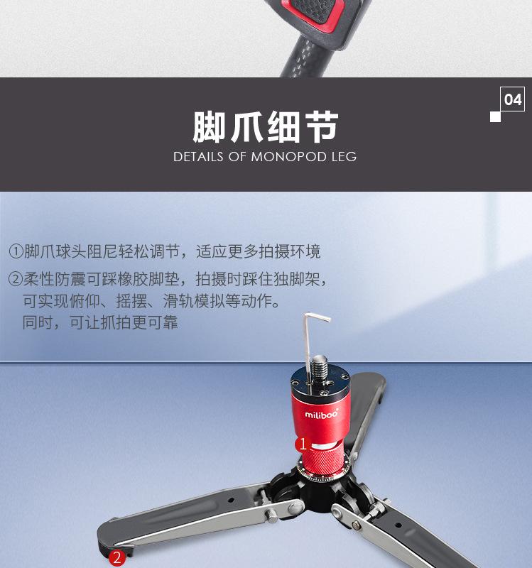 Miliboo m Bo MQA Versión Estrella marco de una pieza soporte de trípode de fibra de carbono monopié de amortiguación hidráulica