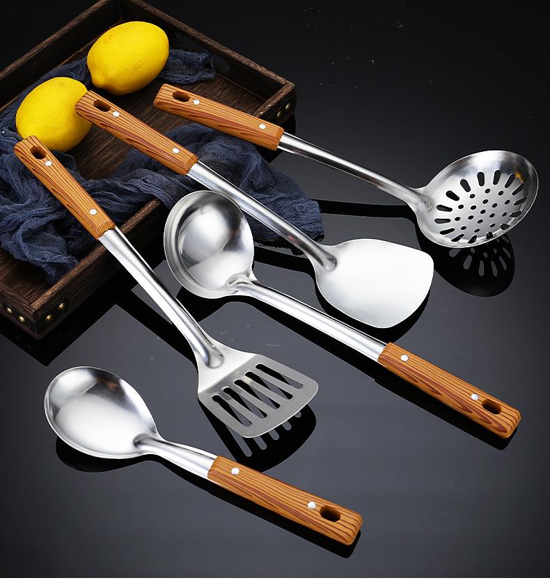 Set completo de utensilios de cocina de acero inoxidable espátula cuchara juego completo para el hogar cuchara para cocinar pala de cocina cuchara colador suministros para hotel