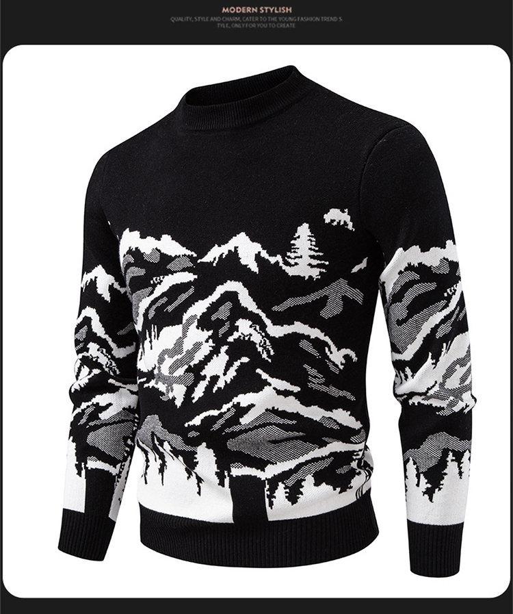Tendencia de Moda Masculina Otoño/Invierno 2025 Nuevo Suéter Tejido Estilo Coreano Jacquard Casual Camiseta Base Comercio Exterior Transfronterizo