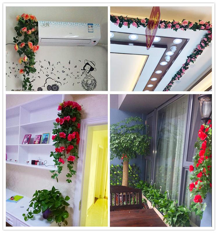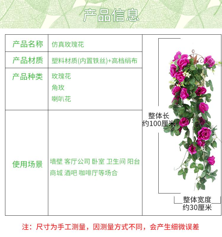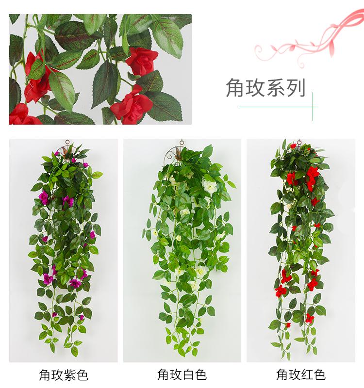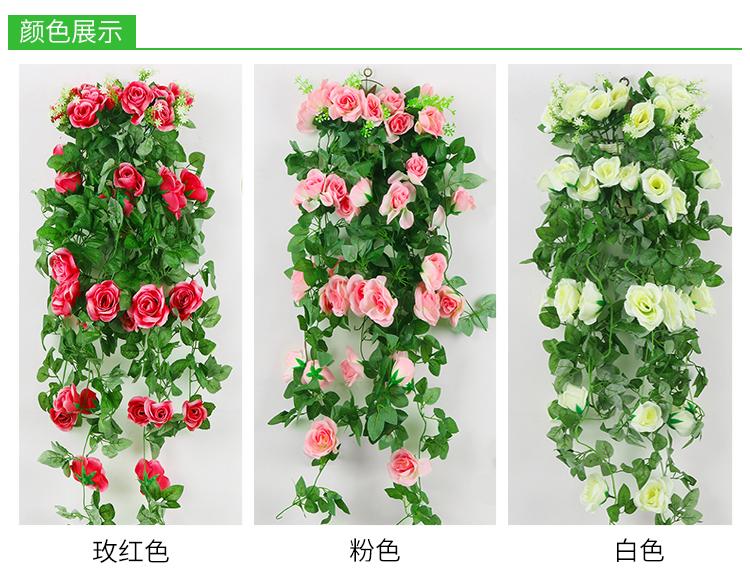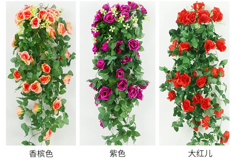 Ratan de Flores Artificiales Vid de Flores Falsas Vid de Flores de Plástico Decoración de Cesta Colgante de Pared para Sala de Estar Interior Flores Planta Pared