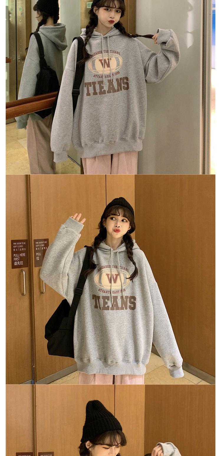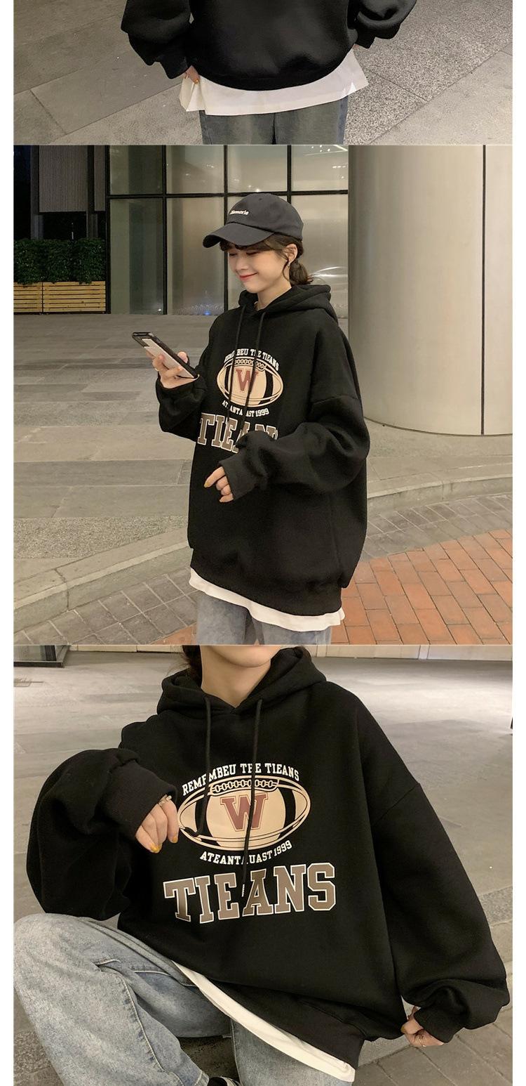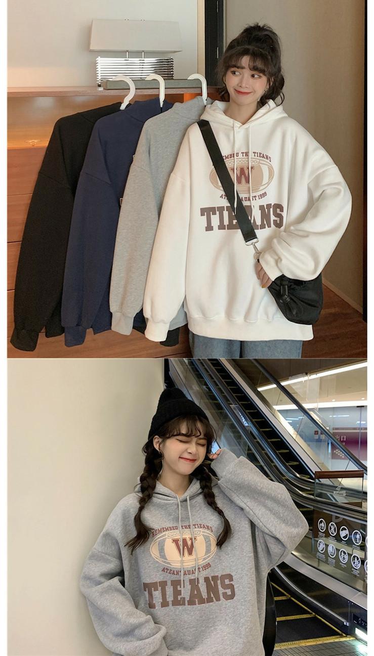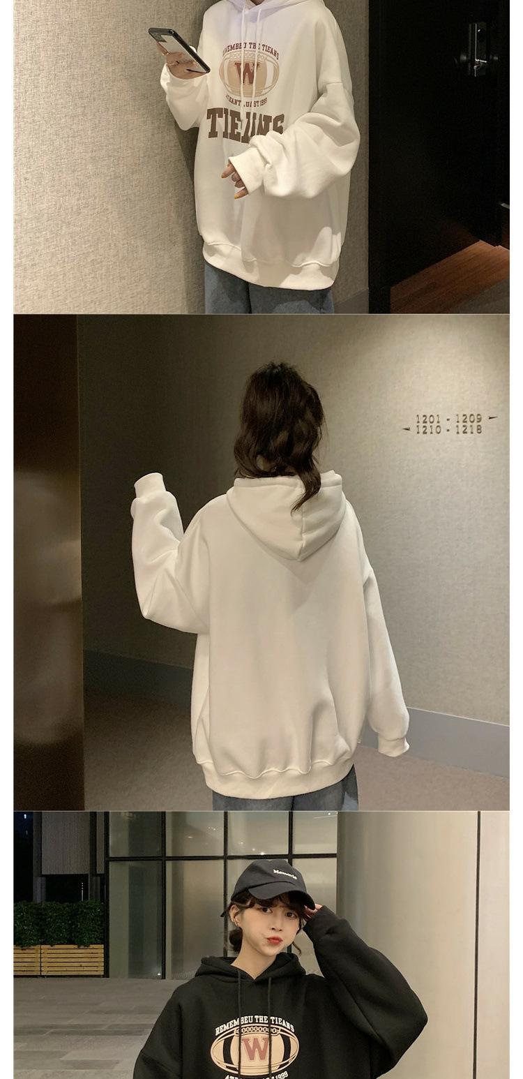 Suéter con capucha forrado de felpa para mujer 2025 otoño e invierno nuevo holgado con estampado de letras abrigo de estudiante para mujer comercio exterior