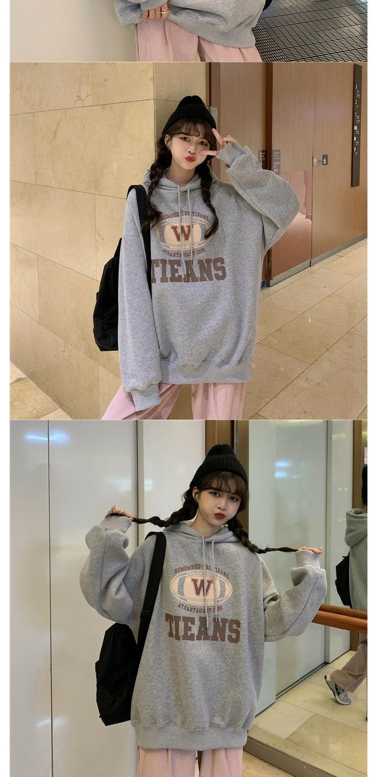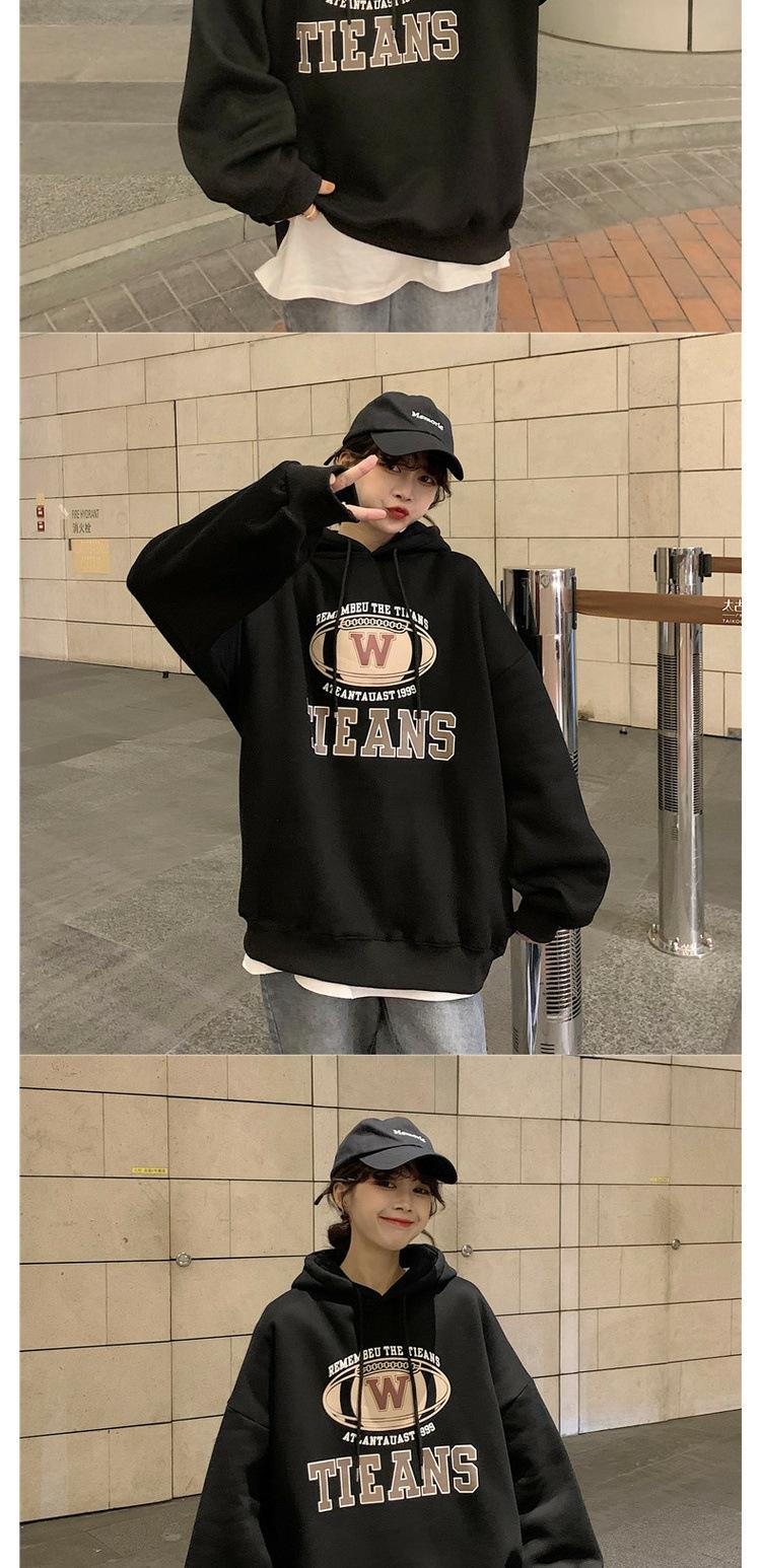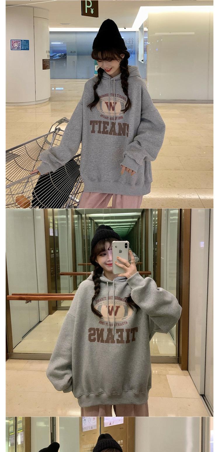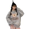 Suéter con capucha forrado de felpa para mujer 2025 otoño e invierno nuevo holgado con estampado de letras abrigo de estudiante para mujer comercio exterior