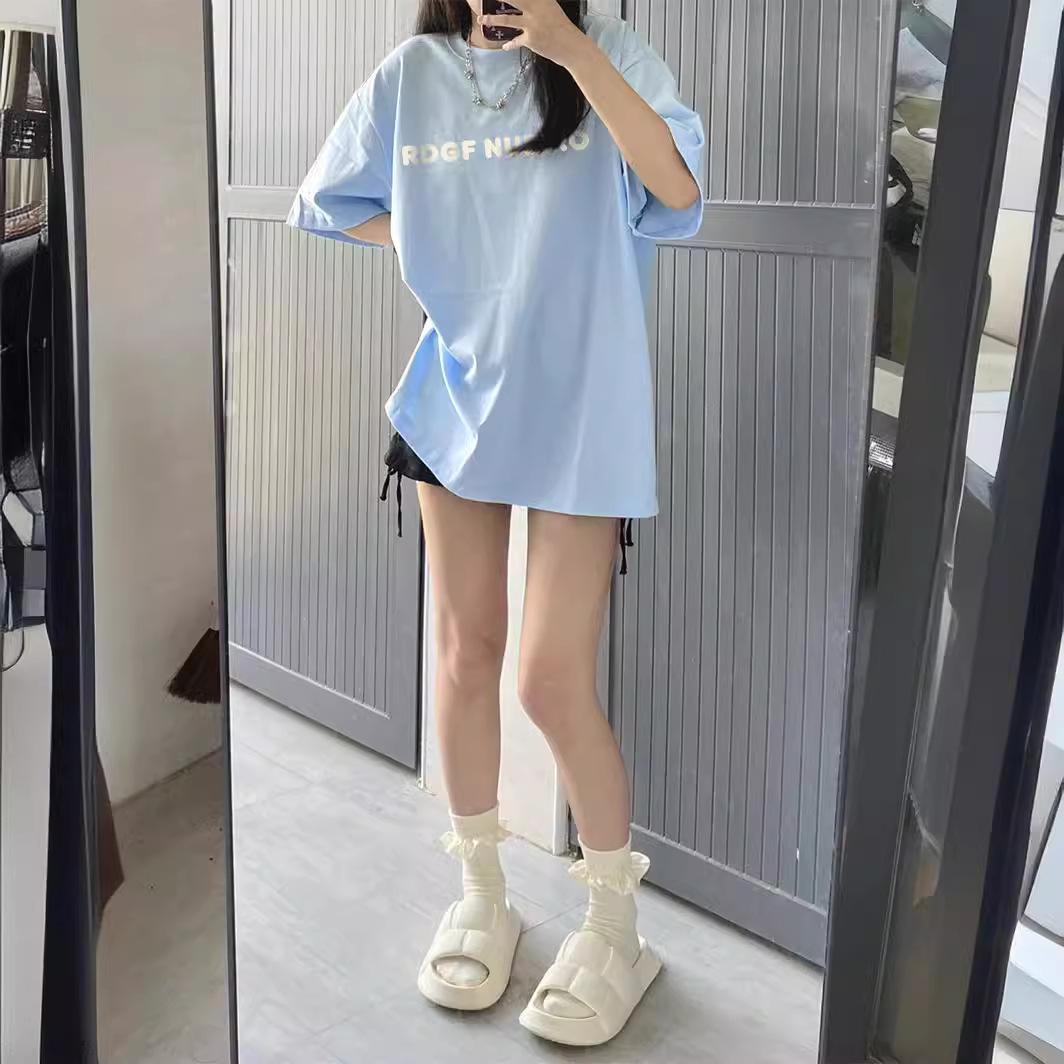 Camiseta de manga corta estilo holgazán para niñas primavera y verano 2025 nueva para estudiantes de secundaria y preparatoria top holgado de media manga ins