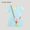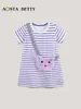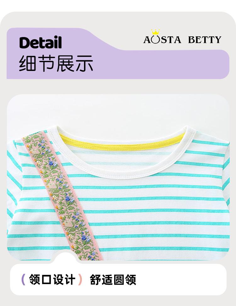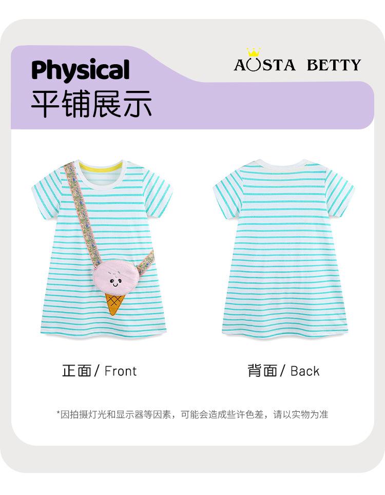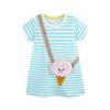 Verano Nuevo Vestido de Niñas Estilo Europeo y Americano Bordado Aplicación Vestido de Princesa para Niños Rayado Cuello Redondo Vestido para Niños Lote Mixto