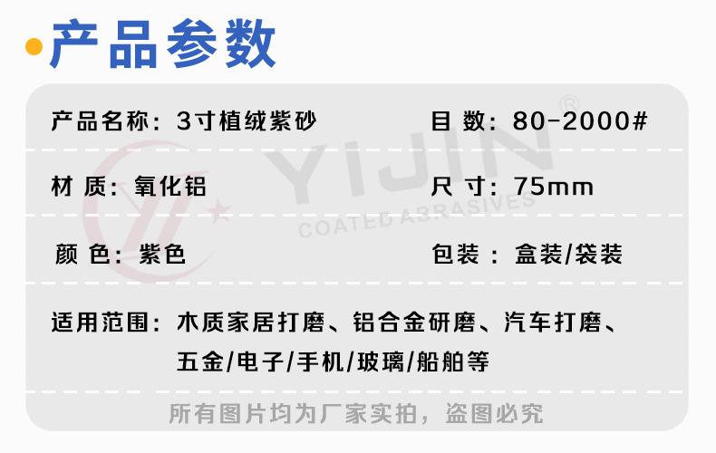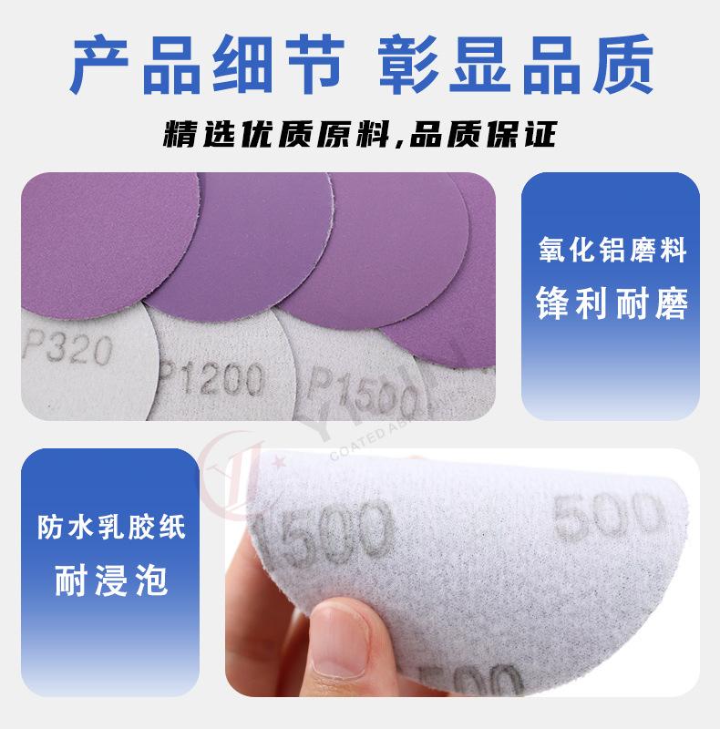 Papel de lija de flocado de 75 mm de arena púrpura de 3 pulgadas para pulido de metales y automóviles, papel de lija de disco de papel de látex anti-obstrucción