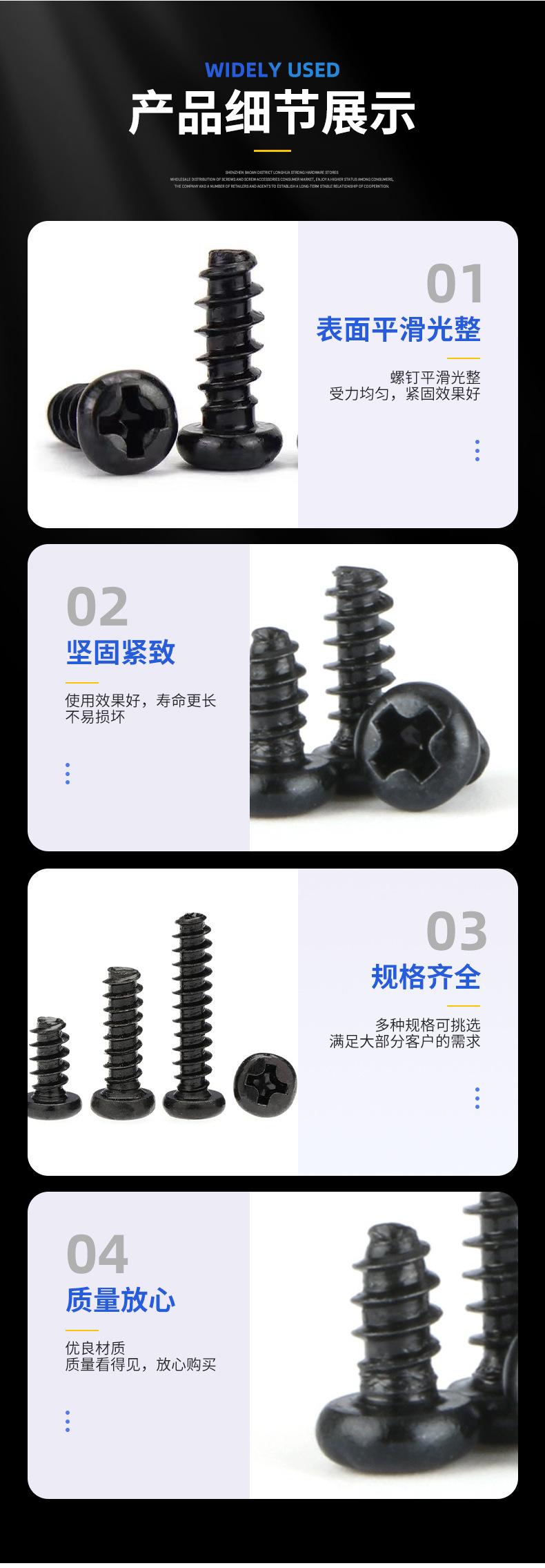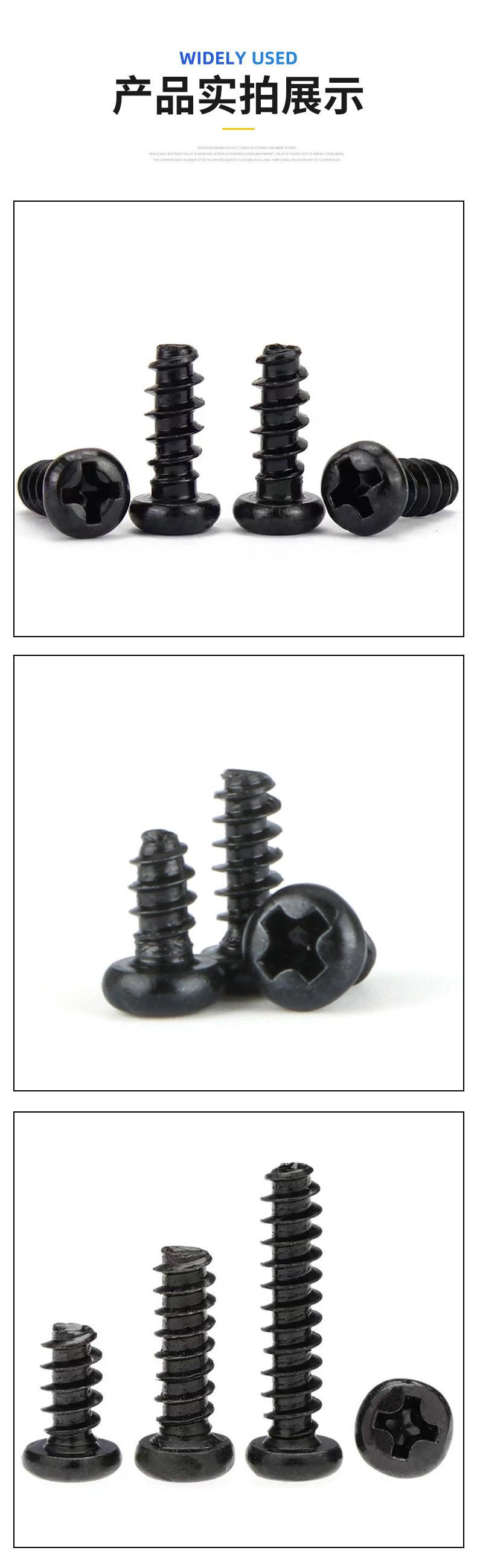 PB tornillo pequeño negro cabeza redonda autorroscante tornillo plano cabeza de sartén autorroscante tornillo plano M1.2-M4.0