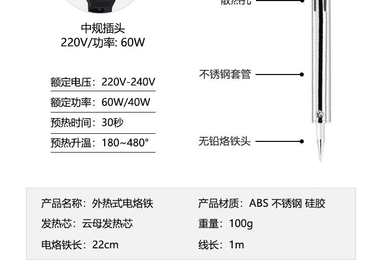 External heat light green electric soldering iron 60W European standard [with indicator light]]