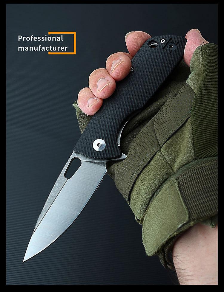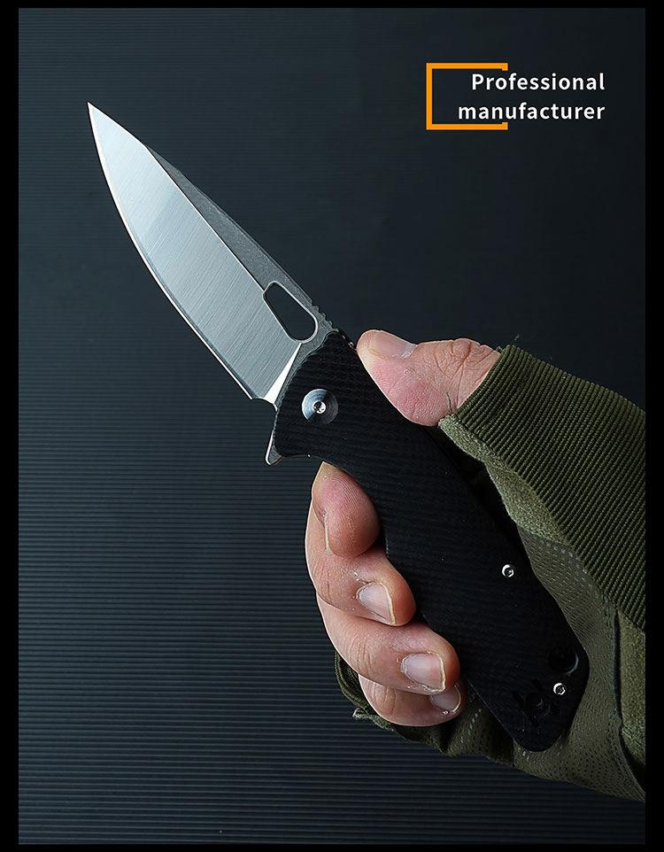 Cuchillo Plegable para Exterior Hoja de Acero D2 Mango G10 con Clip Trasero Portátil Campo Corte de Cuerda Cuchillo Edc Venta al por Mayor de Cuchillos