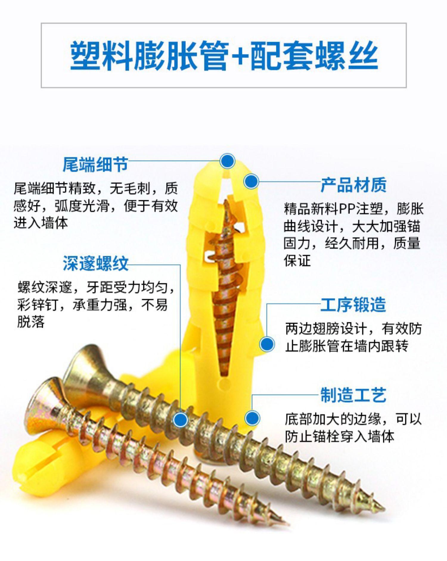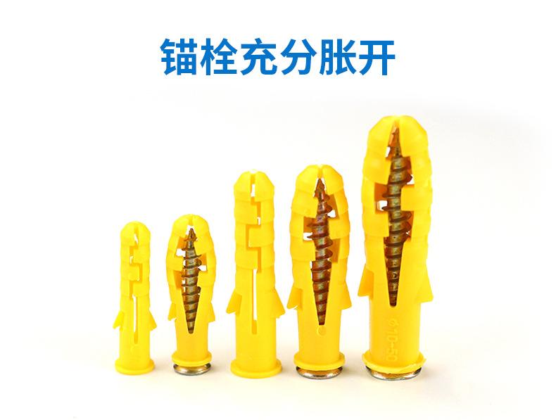 Taco de expansión de plástico para corvina amarilla pequeña, tornillo de expansión, tapón de goma, perno 6/8/10/12, tornillo autorroscante, juego anticaída