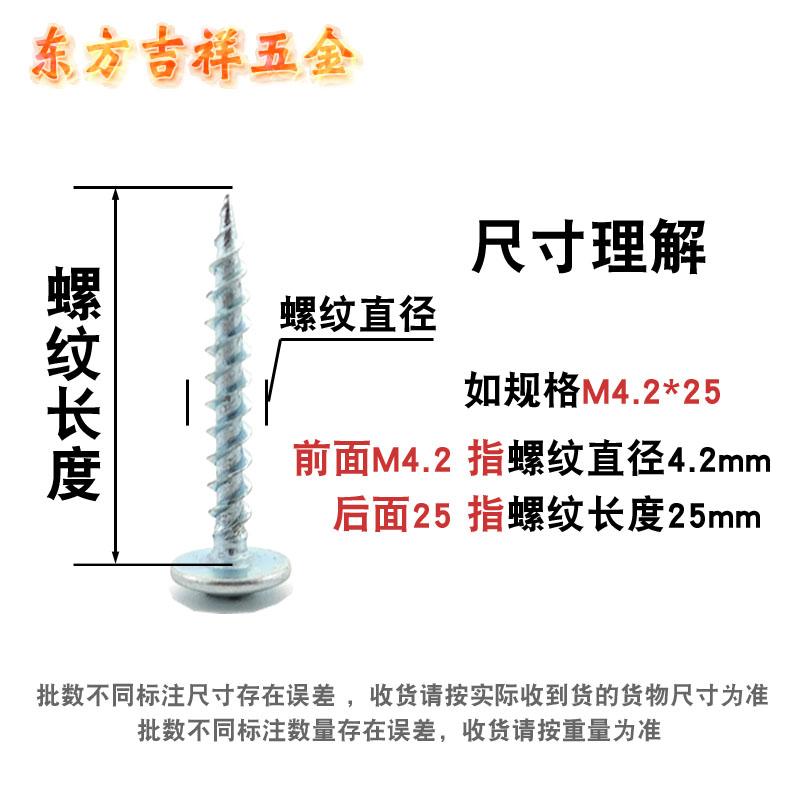 Tornillos Autorroscantes de Alta Resistencia con Cabeza Redonda Cruzada y Arandela, Tornillos Autorroscantes de Cabeza Grande