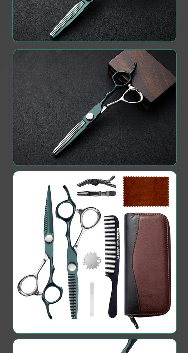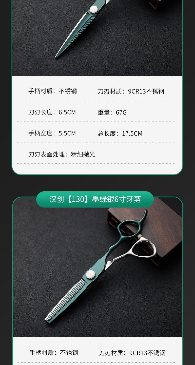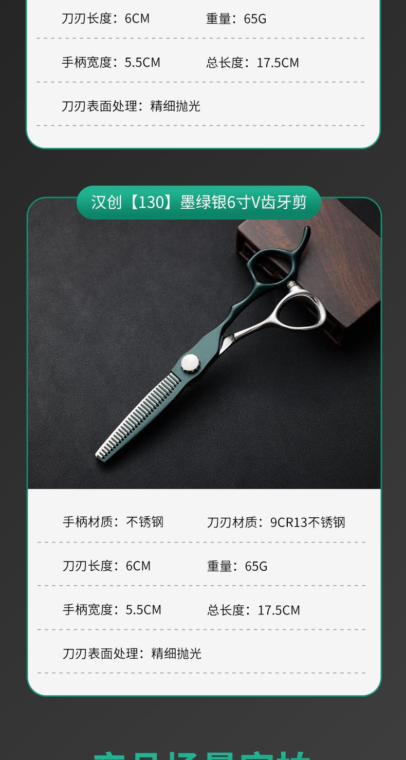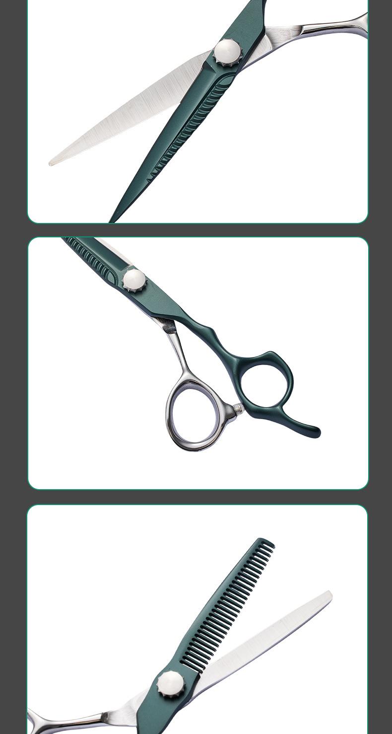 130 dark green silver 6inch flat shear, 130 dark green silver 6inch v tooth scissors, 130 dark green silver 6i...