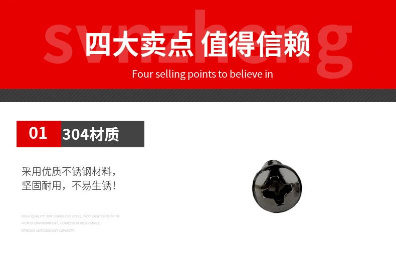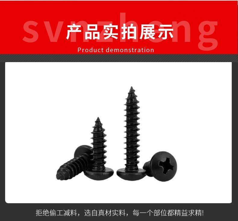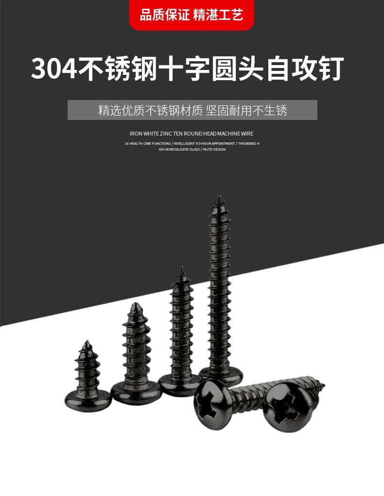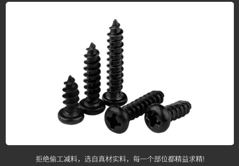 Tornillos Autorroscantes de Cabeza Redonda Cruzada de Acero Inoxidable 304 Negro M2M3M4M5M6 Tornillos Autorroscantes de Cabeza Redonda Cruzada con Zincado Negro