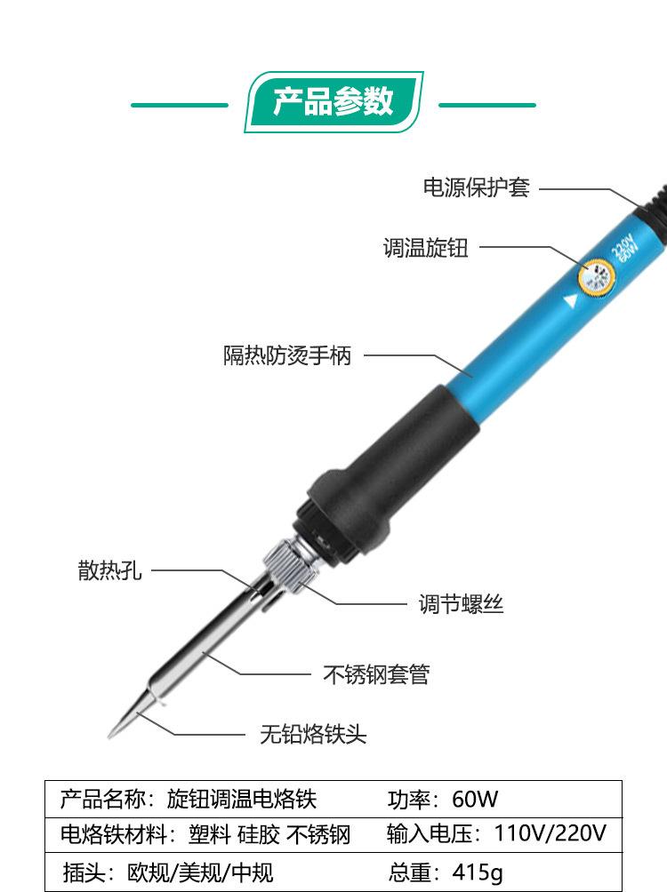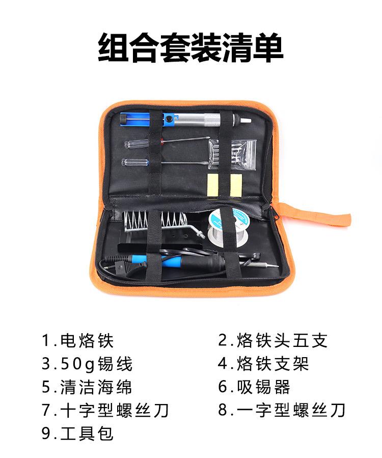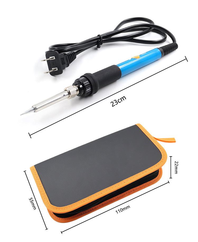 【european standard 220v】13-piece soldering iron kit: temperature adjustable soldering iron + 5 soldering iron tips + 2 screwdrivers + solder + 50g solder wire + a iron stand + sponge + tool bag