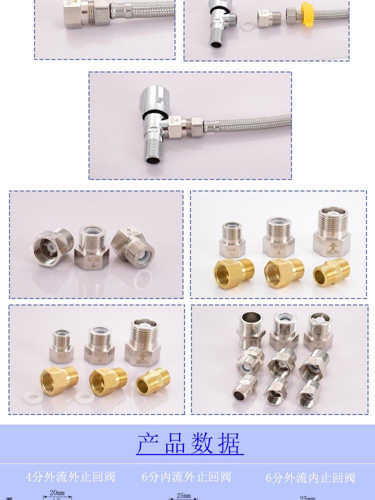 Válvula de retención de inodoro de latón de 4 puntos flujo interno de 6 puntos externo 1 pulgada doble externo acero inoxidable 304 rosca interna y externa válvula de retención antirretorno