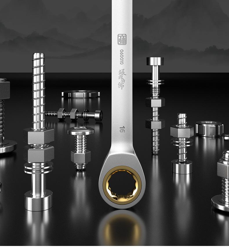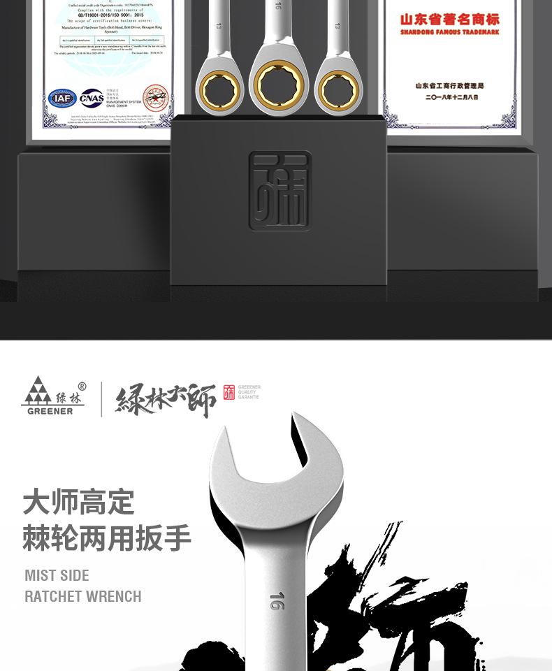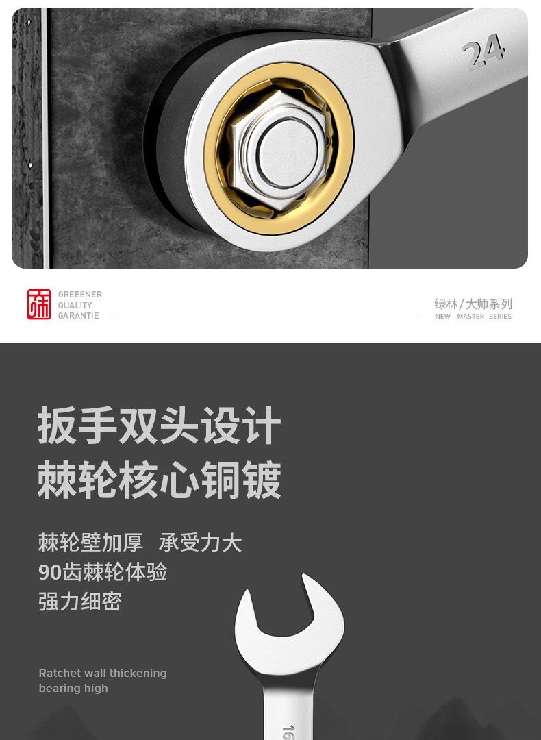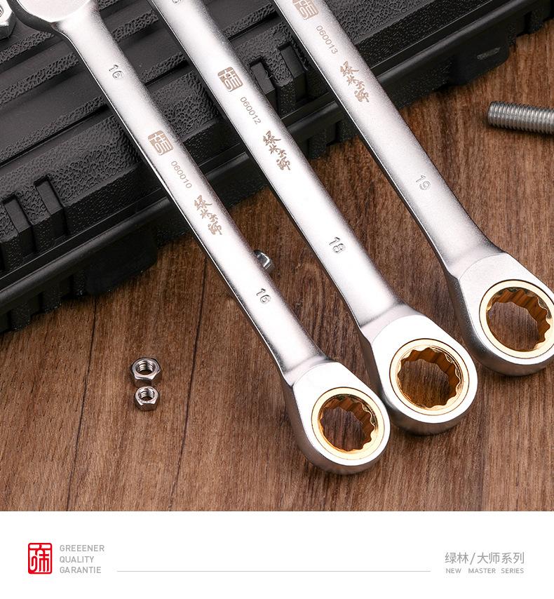 Llave de carraca Greenwood de doble propósito Llave de anillo abierto Llave de ciruela de doble extremo Juego de herramientas de reparación automática bidireccional rápido