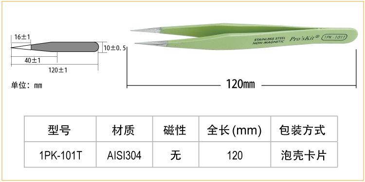 Pinzas antiestáticas antimagnéticas de punta redonda 1PK-101T (120mm) productos genuinos pinzas Baogong al por mayor