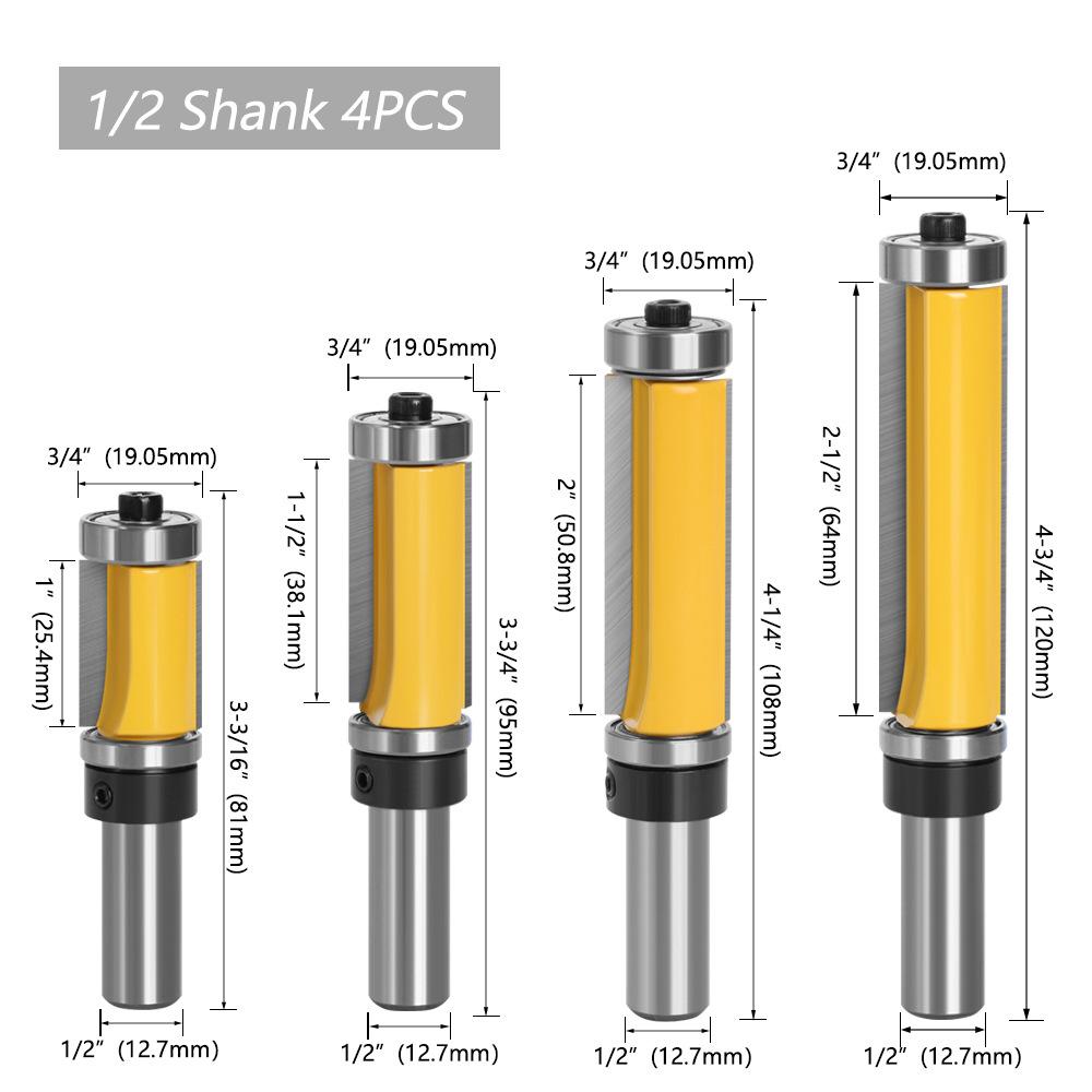 Juego de 4 piezas fresa de recorte con rodamiento superior e inferior vástago de 1/2 25/38/51/63 |