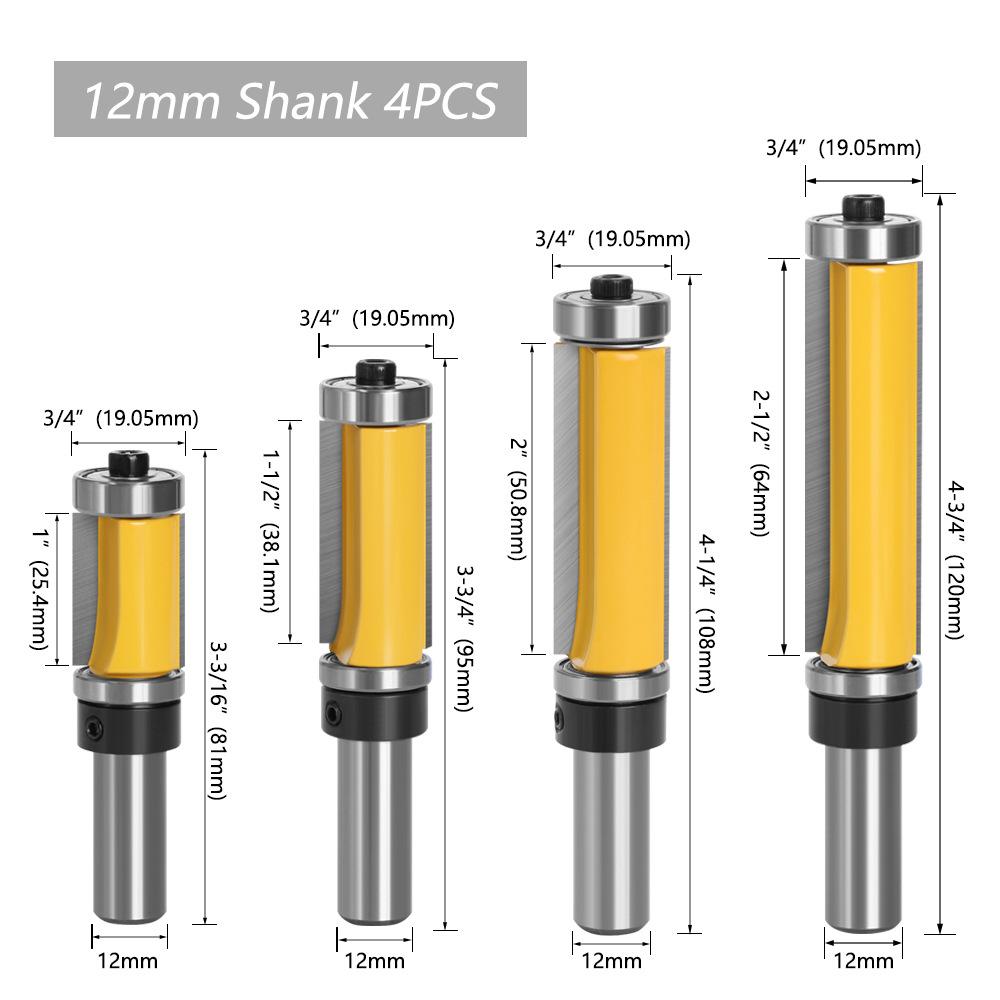 Juego de 4 piezas fresa de recorte con rodamiento superior e inferior de vástago de 12 mm 25/38/51/63 |